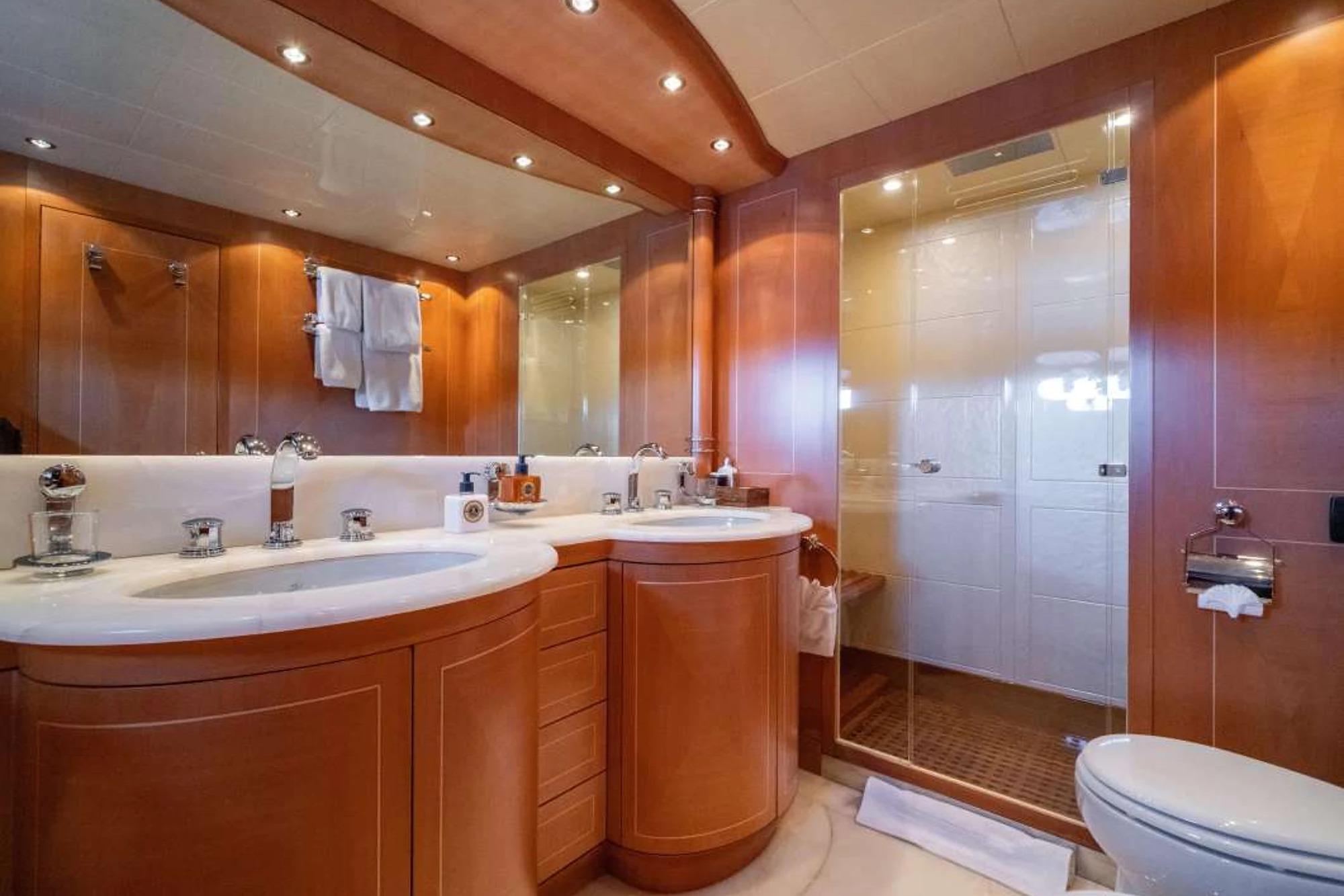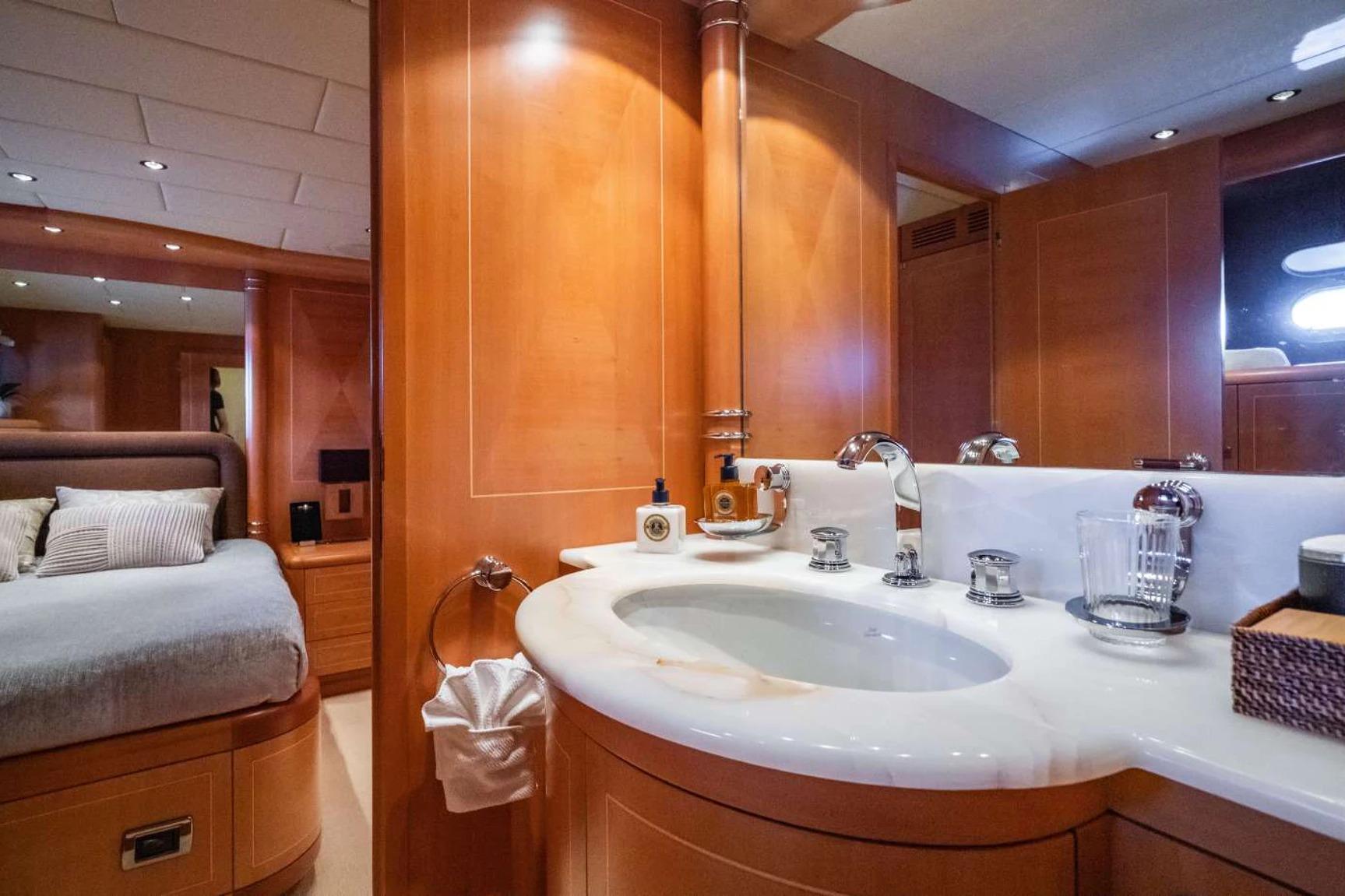 Crew quarters for up to 4 crew in 2 seperate cabins + two bathrooms.