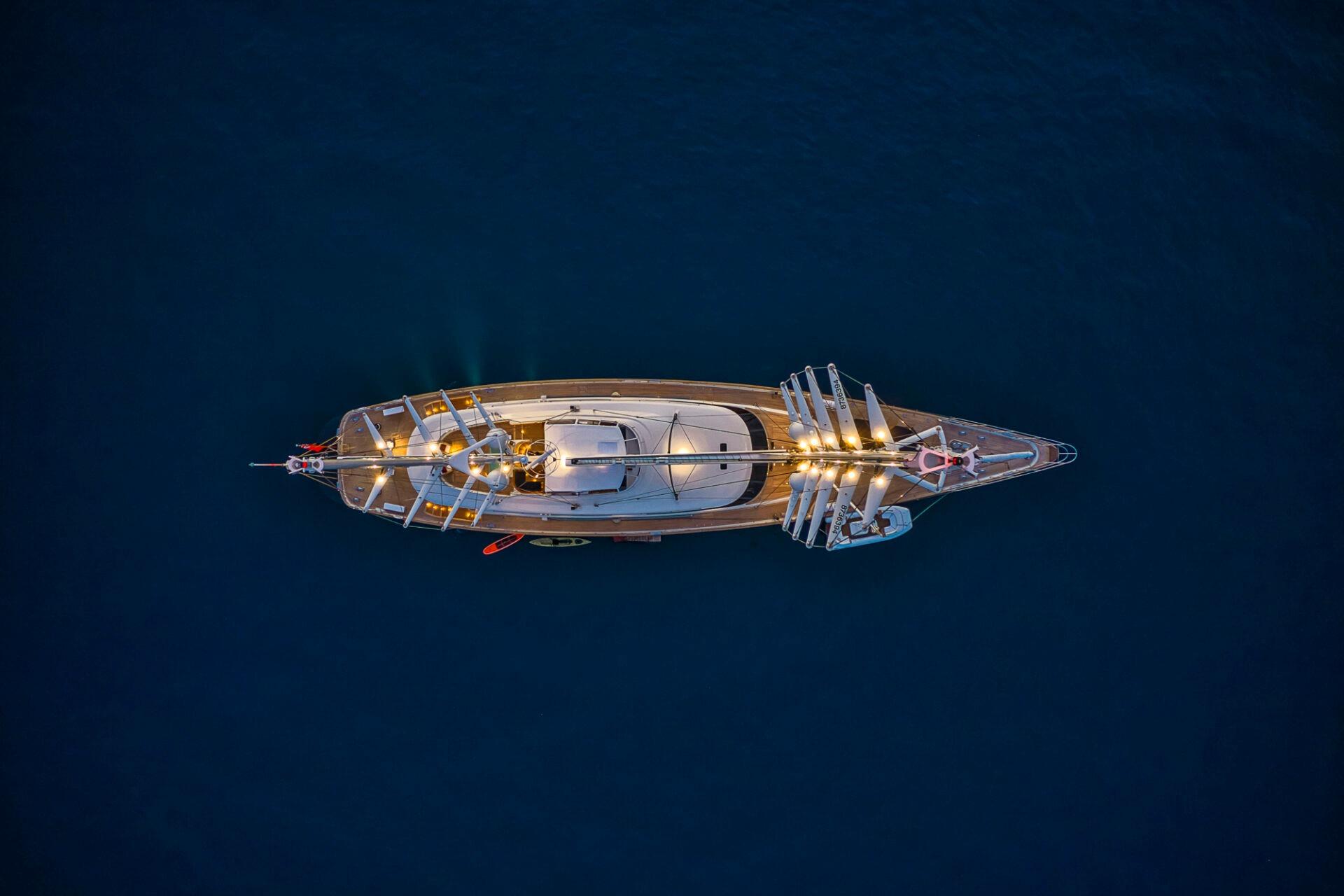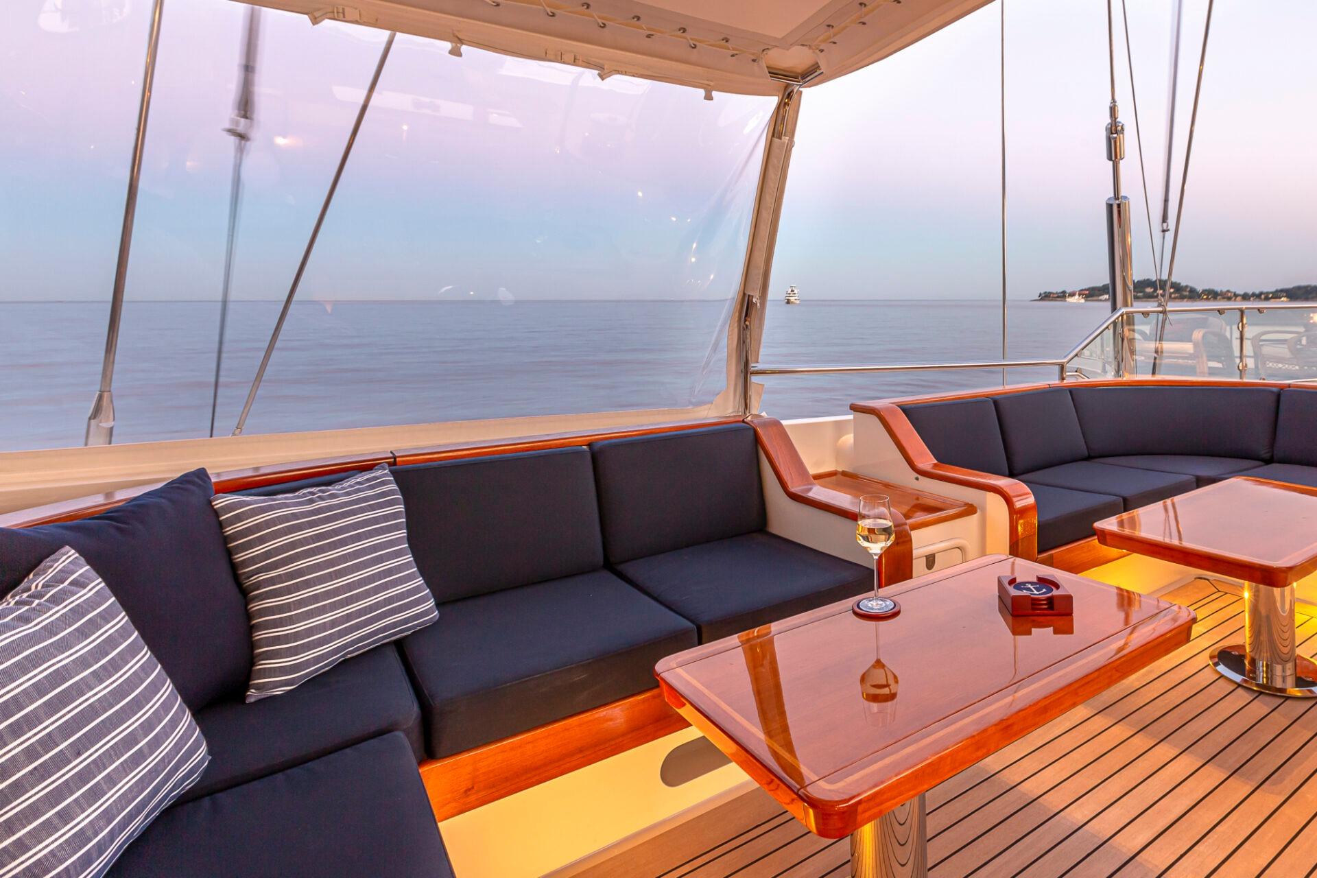 ZENJI has been maintained to the highest standards throughout her life and recently completed her 20-year ABS special survey. During this period, her main engines underwent a full major overhaul, generator engines received top-end rebuilds, and all drive lines were fully serviced. Her rigging was renewed with a new rod package for the main and mizzen masts, complemented by a full set of 3Di North Sails delivered in 2023. On her flybridge, 25m² of teak decking was renewed around the Jacuzzi, while her interiors were refreshed with new carpets in 2022 and again updated in 2025. Every system was carefully inspected and serviced to ensure optimal performance and reliability.