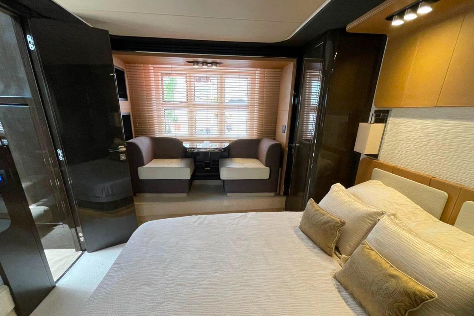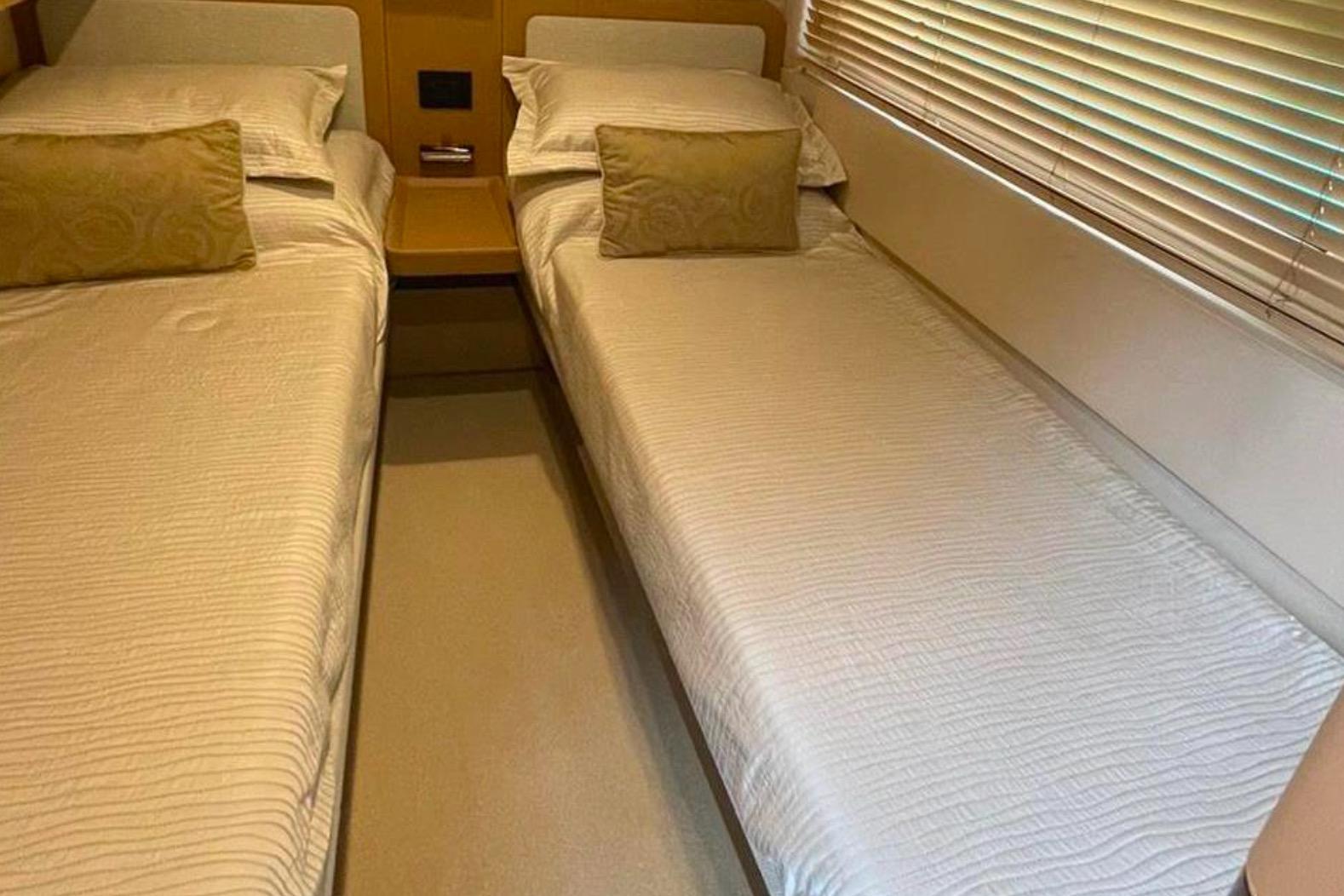 With a generous 23.46 m length and an 18 ft (5.56 m) beam, the Azimut 77 offers impressive volume throughout. Her four spacious cabins provide elegant accommodation, while her contemporary exterior lines and GRP hull deliver the unmistakable sophistication Azimut Yachts is known for.