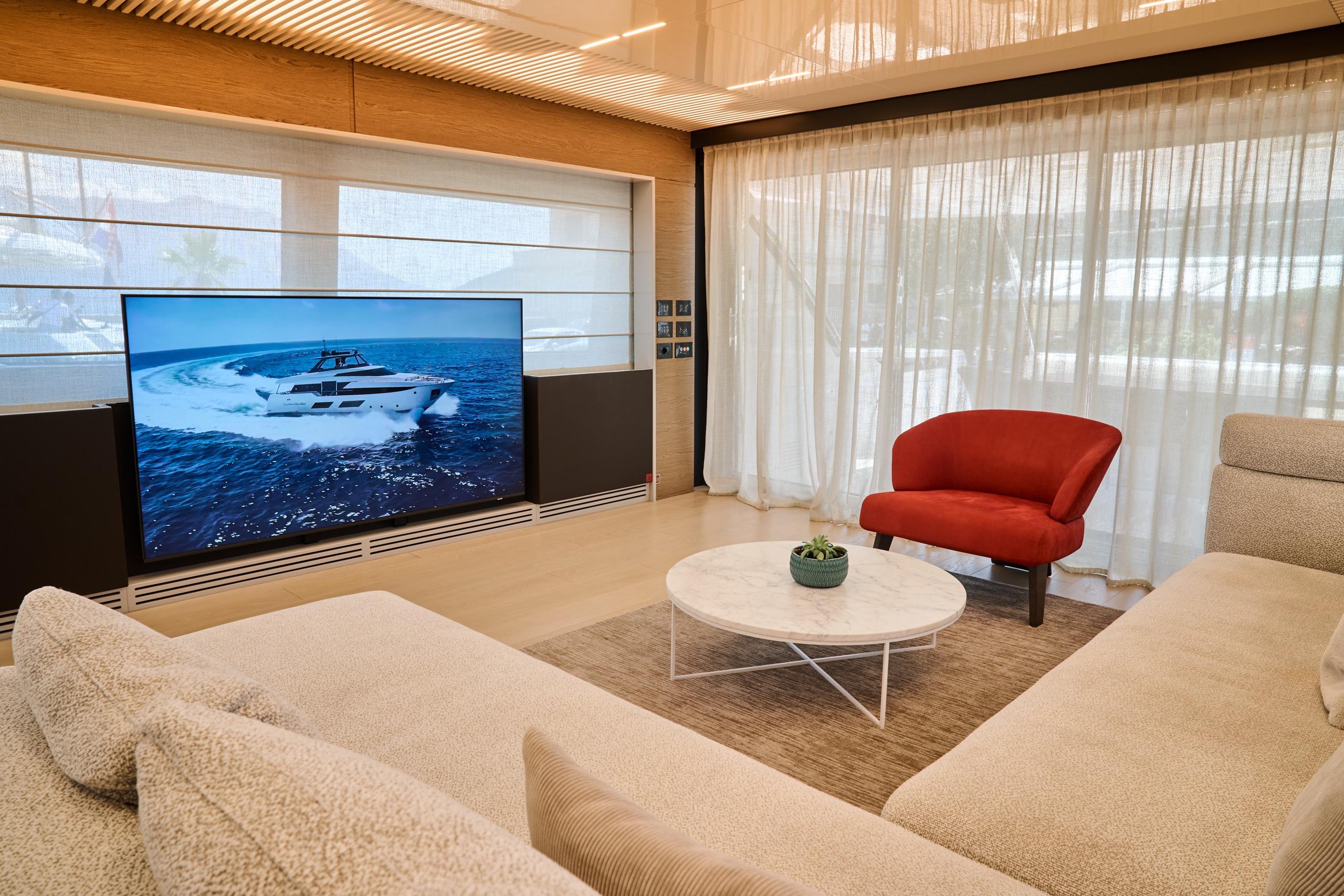 Striking lines, unmistakable style, charm and performance – all in one remarkable yacht. This highly innovative maxi-flybridge is designed with an impressive collection of spaces, featuring sumptuous décor, multipurpose relaxation areas and a classic-contemporary interior feel. She is the quintessence of wellbeing and style.