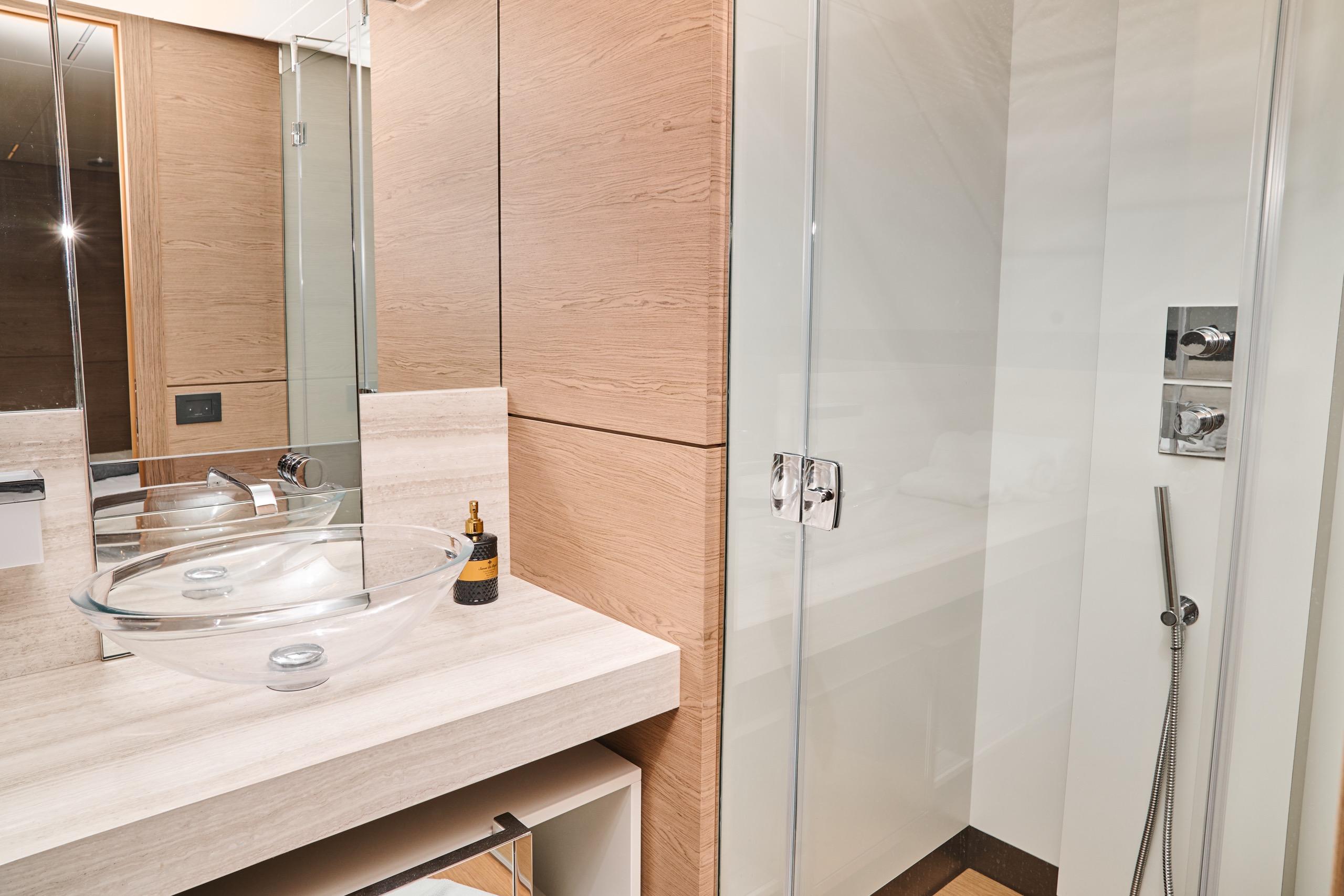 - Full-beam master suite on the main deck + 4 double ensuite staterooms