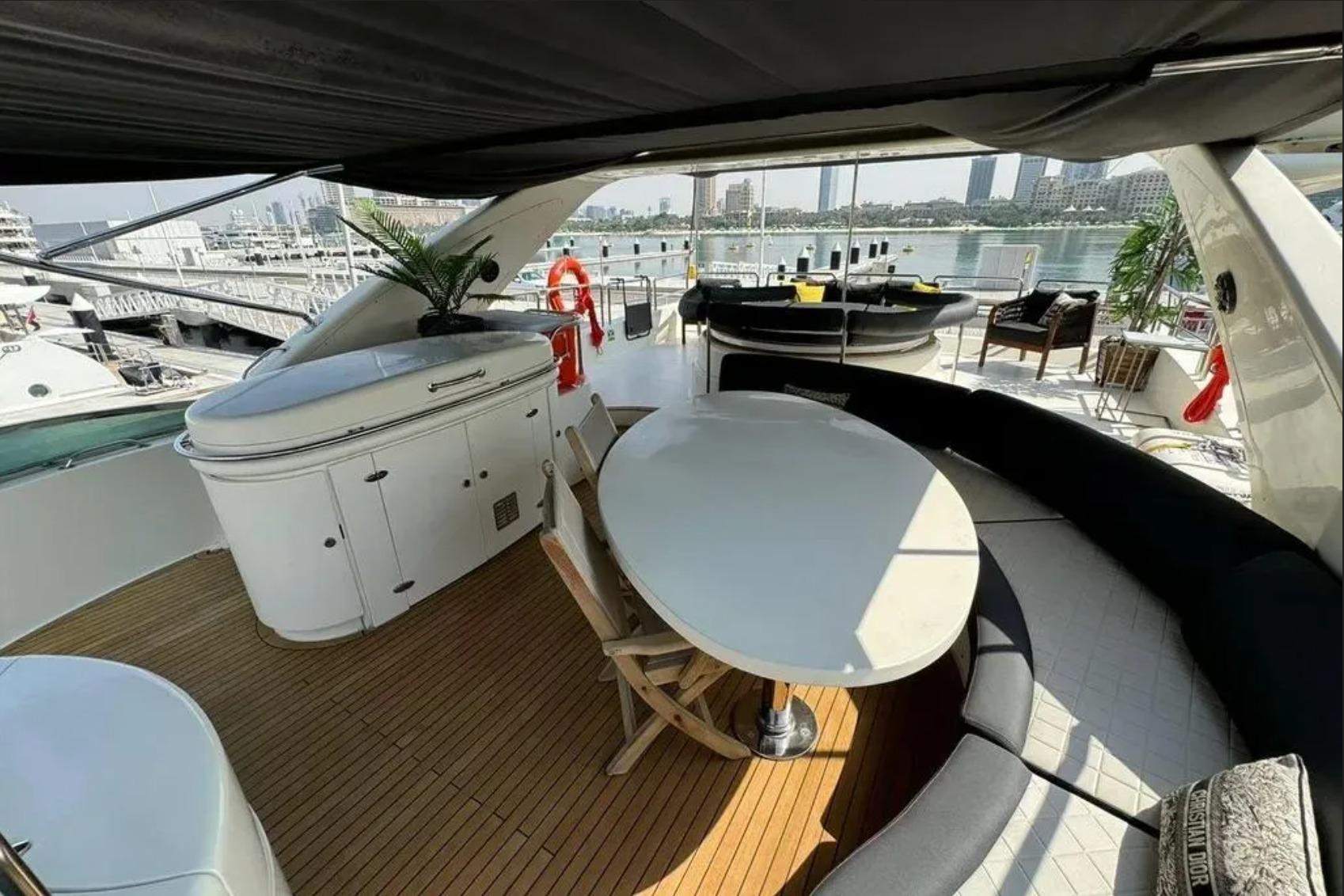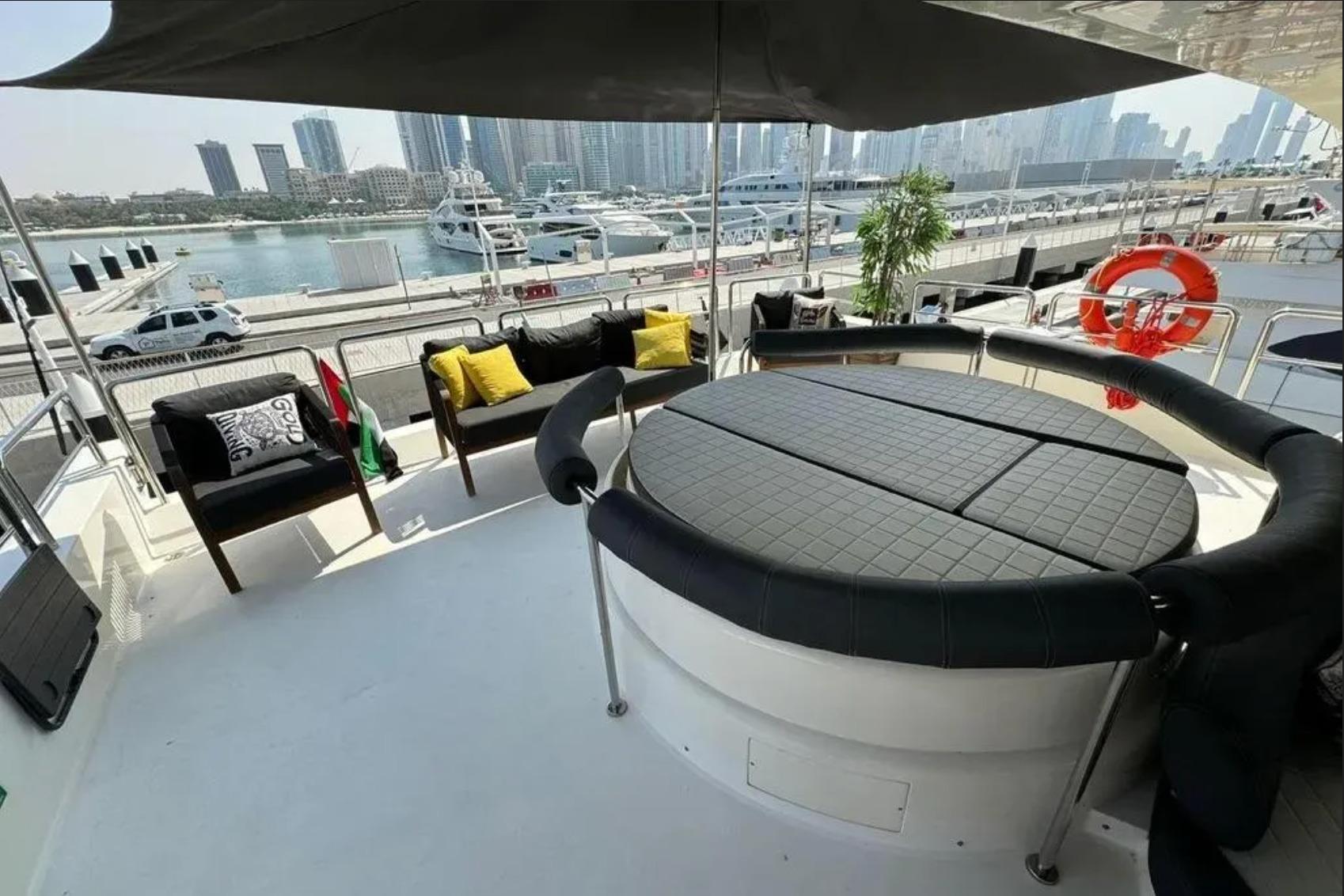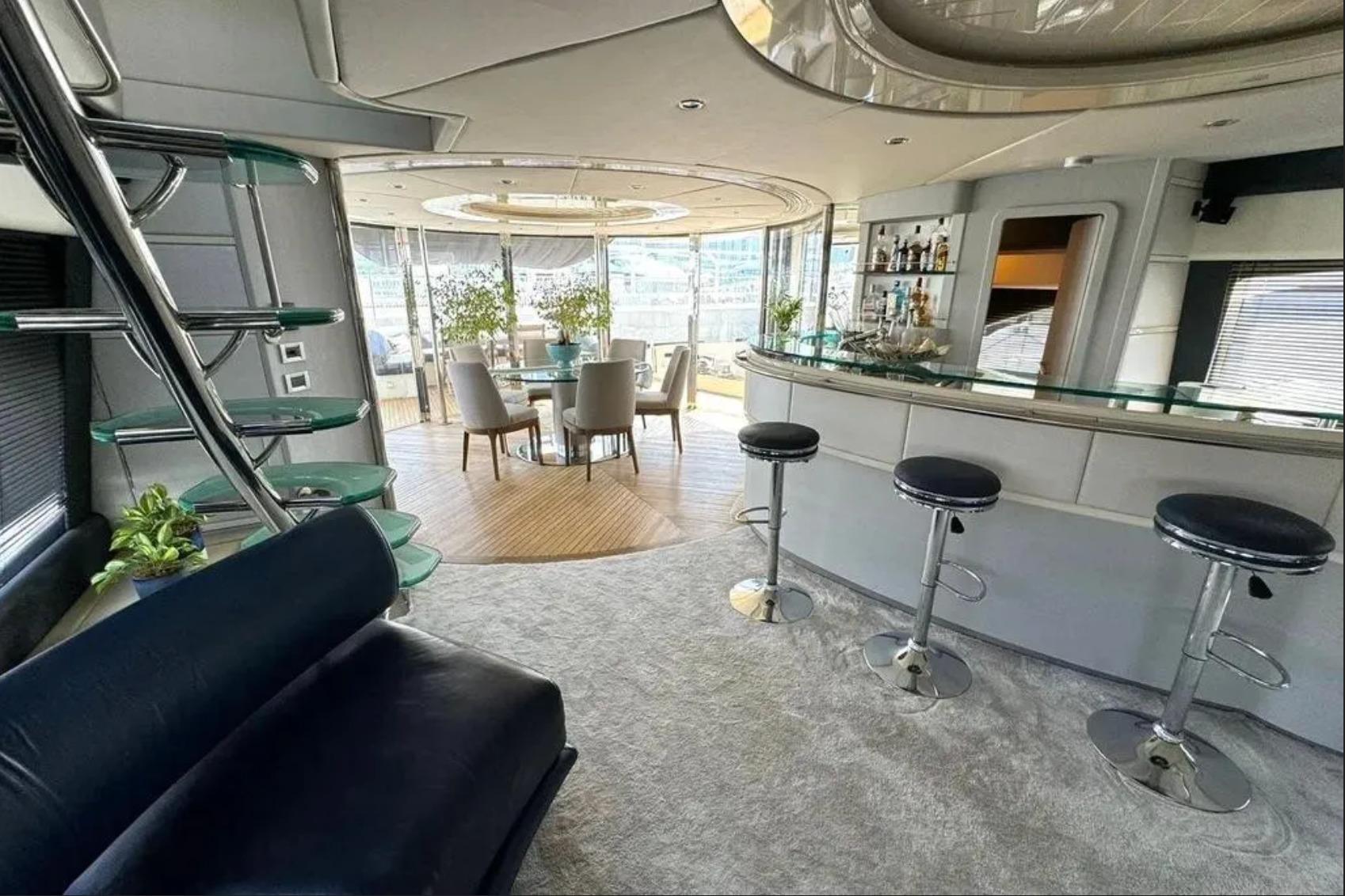 The flybridge is designed for entertaining: lounge in the Jacuzzi, enjoy sunbathing on spacious sunpads, gather around the bar and grill, or take in 360° views from the seamless lounge and dining area. With a tender garage and expansive swim platform, she combines functionality with luxury for unforgettable adventures.