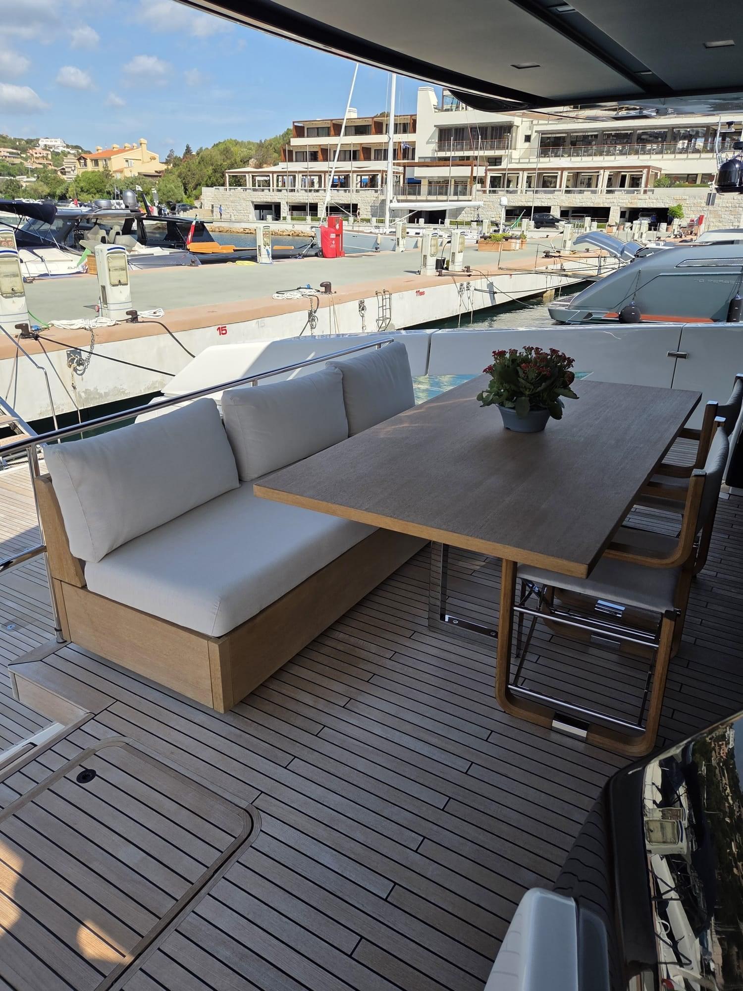 THE FLY OFFERS FLEXIBILITY WITH A CENTRAL TABLE AND AN OKTRE SOFA TO THE SUNBATHING AREAS.