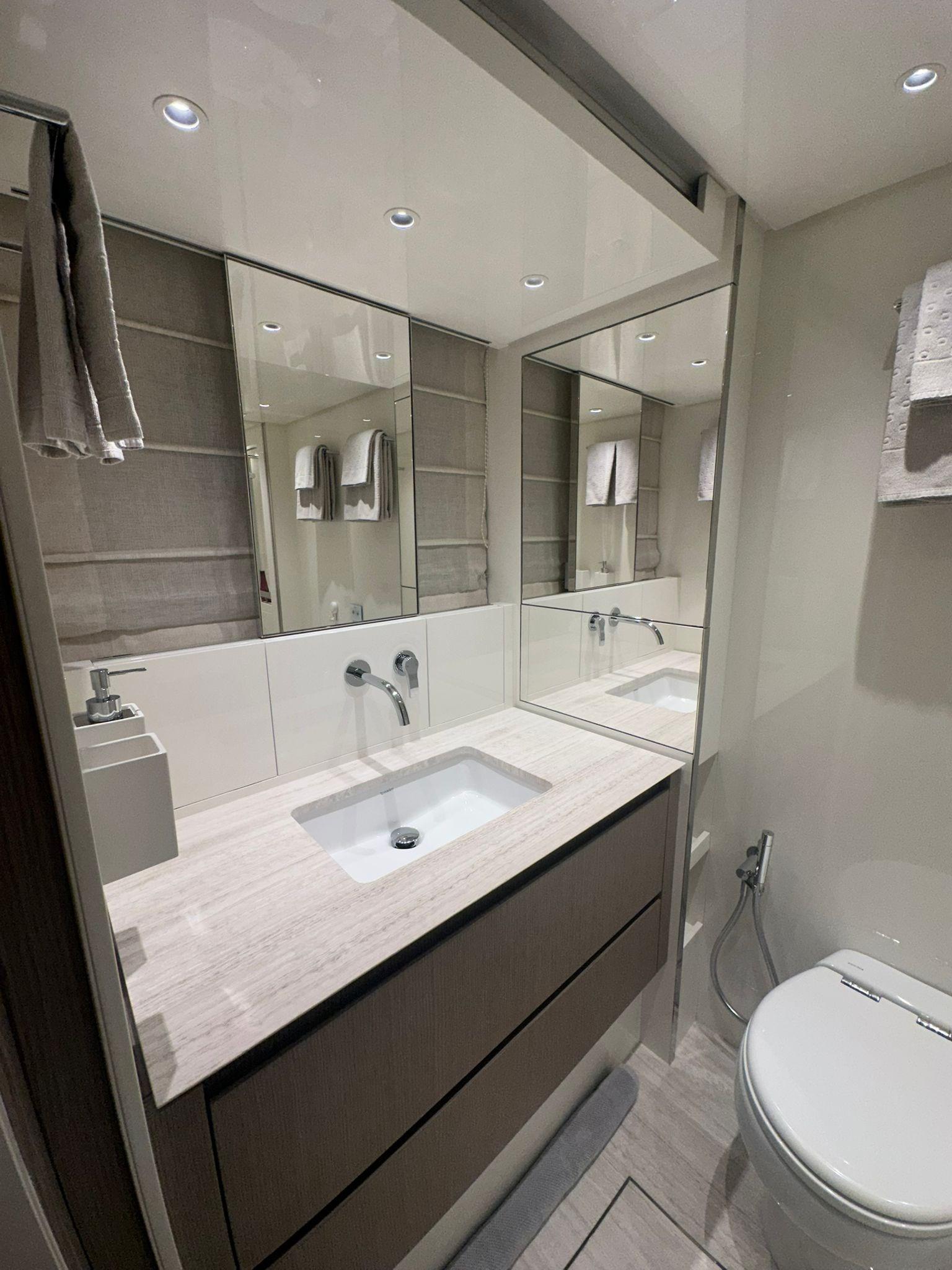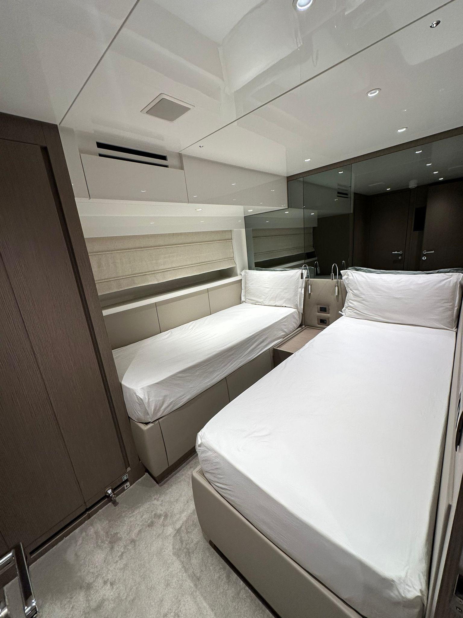 LA ZONA NOTTE, INTIMA ED ACCOGLIENTE, PREVEDE QUATTRO CABINE NEL LAYOUT STANDARD, TUTTE DOTATE DI BAGNI PRIVATI.