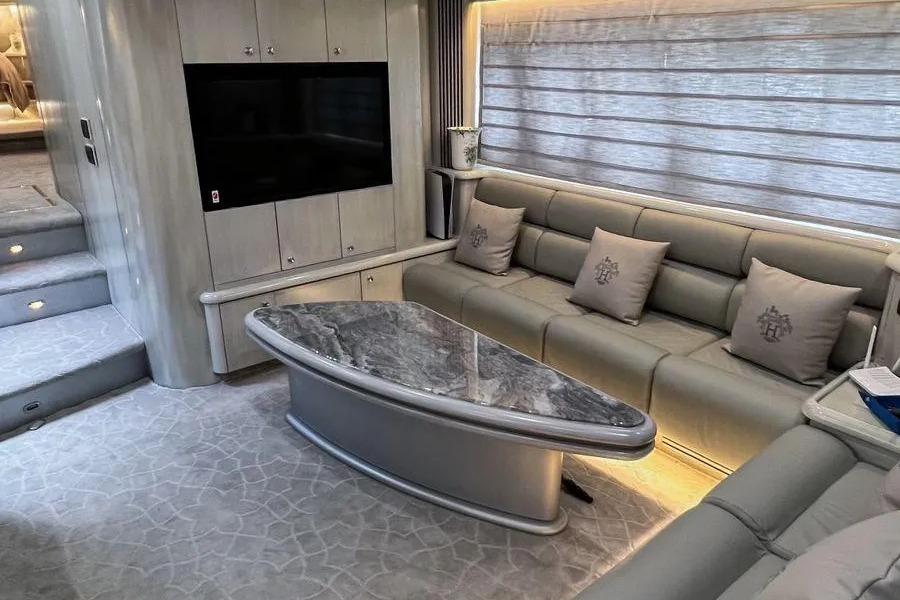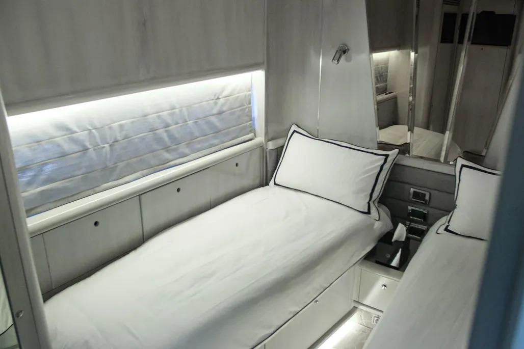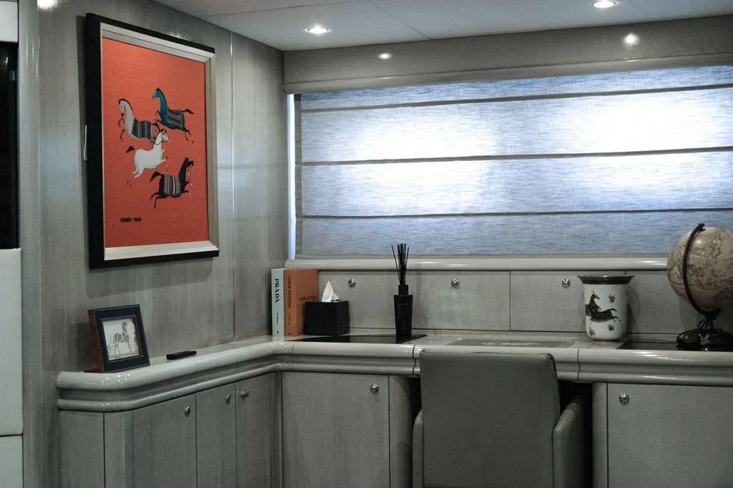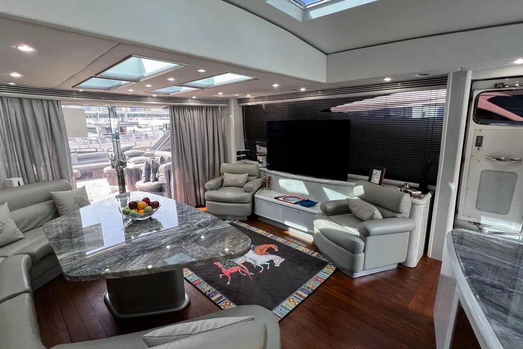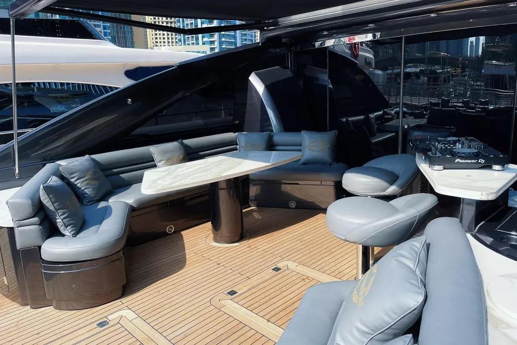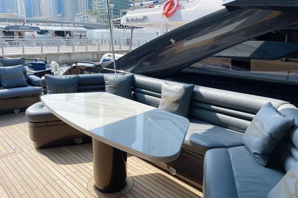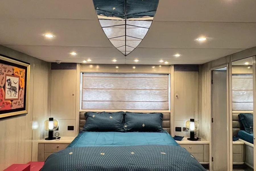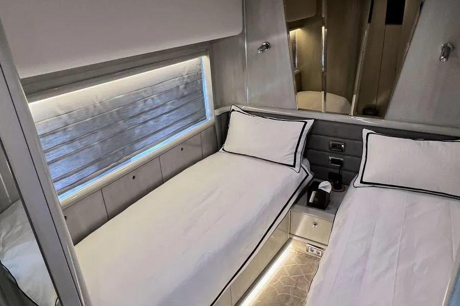 Extensively refitted in 2021–2022, including a full respray, new teak, upgraded AV systems, new soft furnishings, and numerous interior and exterior enhancements, this Predator 95 is presented in outstanding condition. Accommodating up to eight guests in four elegant cabins with additional space for four crew, she combines high-speed cruising with refined comfort.