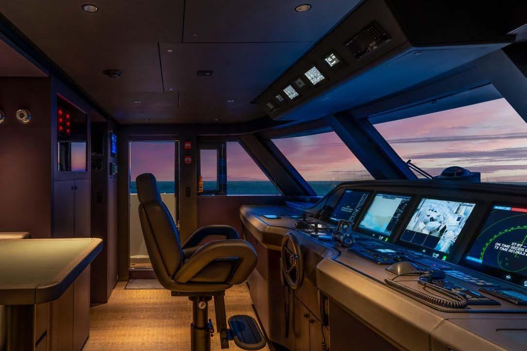 Powered by twin Caterpillar C18 Acert engines delivering 533 kW each, Stellamar reaches a top speed of 13.5 knots and offers an impressive transoceanic range of 5,500 nautical miles at cruising speed. Her technical prowess is supported by CMC zero-speed stabilizers, and a fully integrated Furuno navigation suite, and the innovative hidden crane system ensuring absolute comfort and control in all conditions.