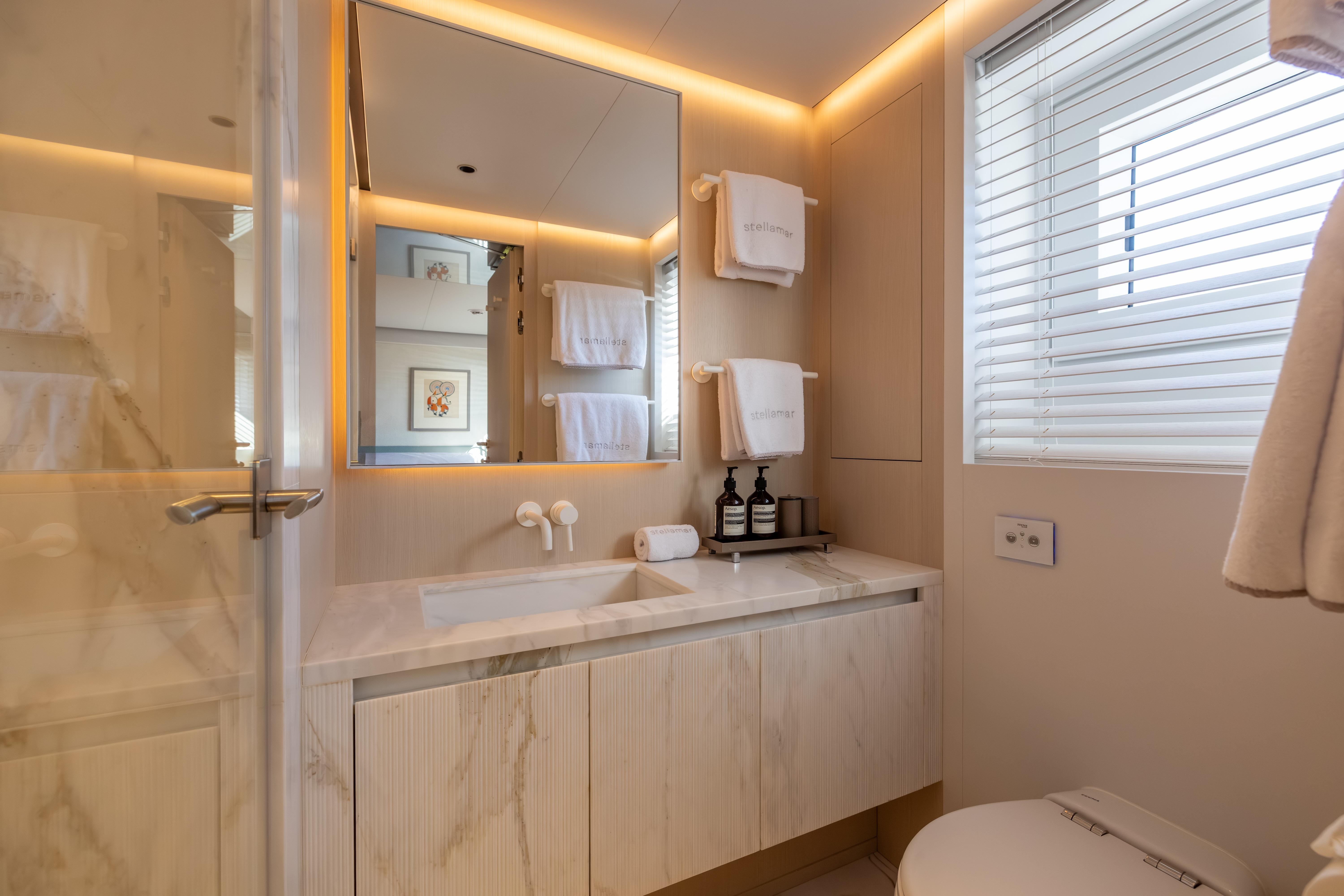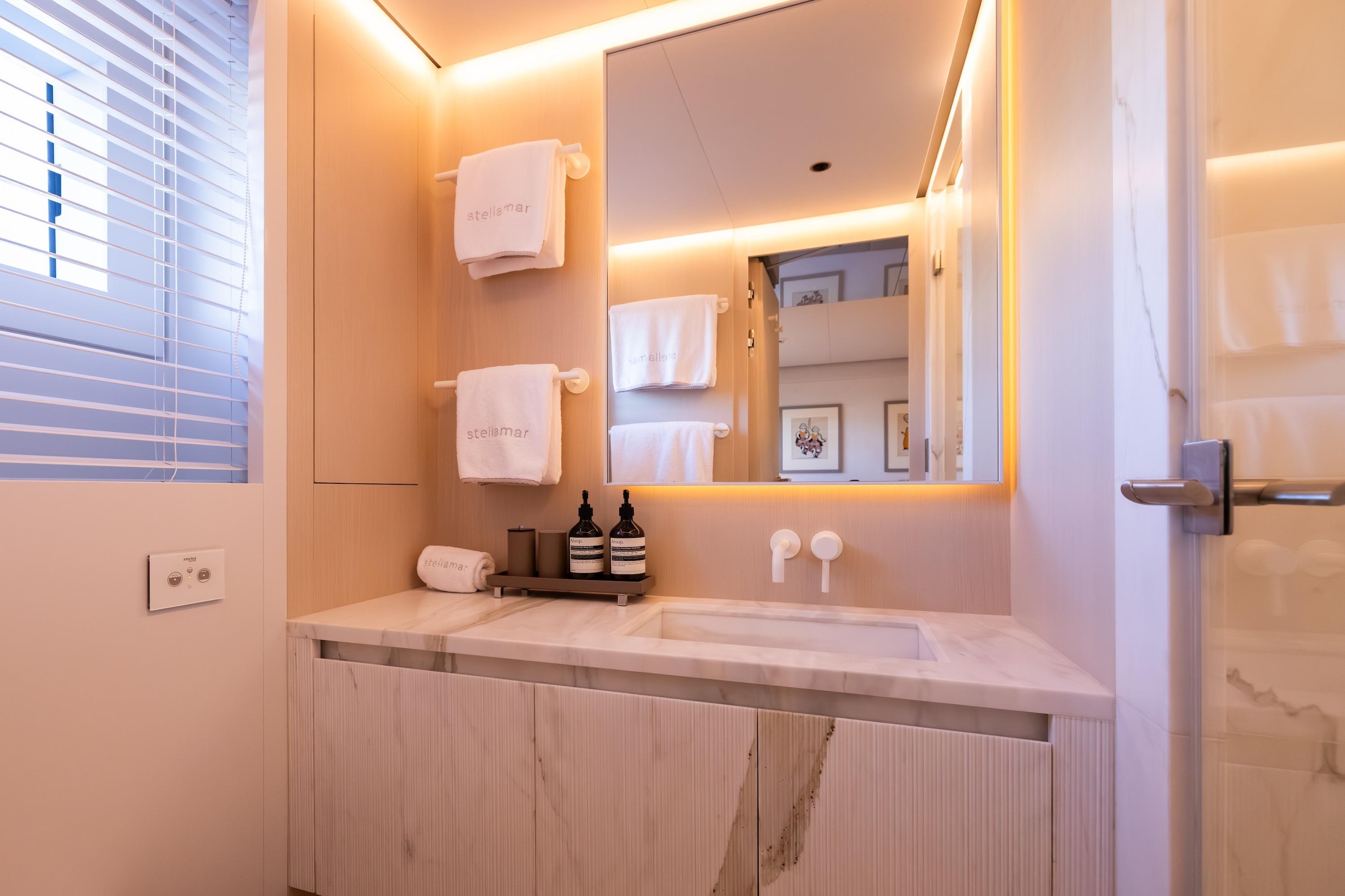 Naval architecture by Sergio Cutolo / Hydro Tec ensures outstanding seaworthiness, efficiency, andcomfort. Powered by twin Caterpillar C18 Acert engines and equipped with 45,000 liters of fuel, Stellamar delivers an impressive 5,000+ nm range at 10 knots, enabling true globe-cruising without frequent stops. Stability is further enhanced by electric-driven stabilizers and a purpose-designed hull geometry.