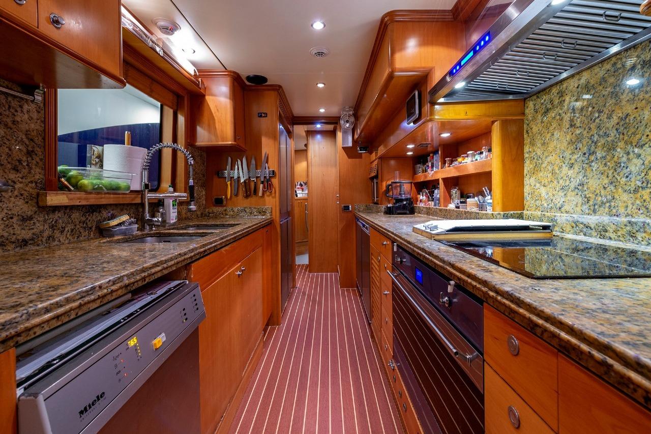 This Tradition 100′ yacht is equipped with an ultra-modern stabilization system which reduces roll motion effect while cruising and results in a smoother, more enjoyable navigation experience.