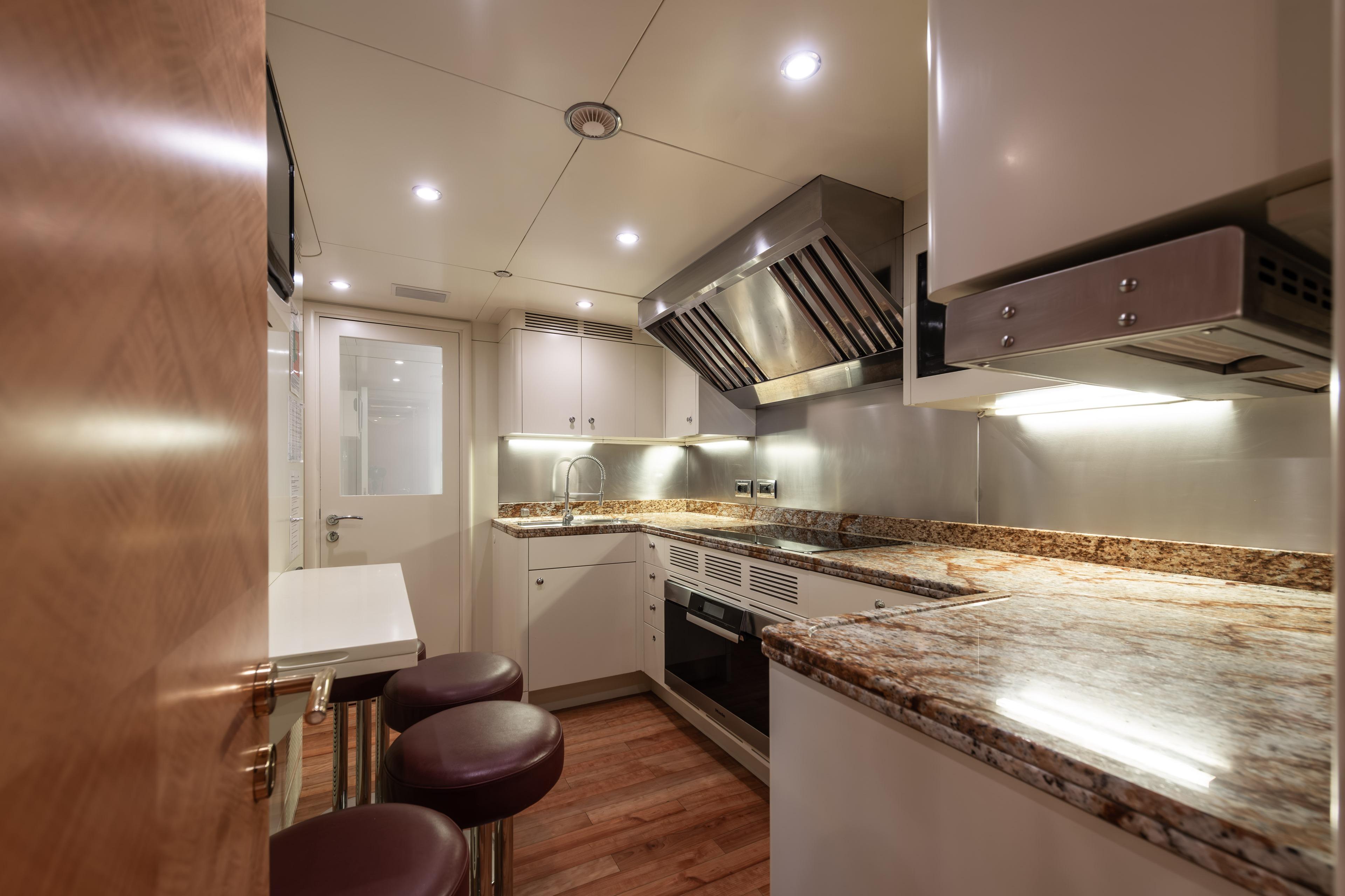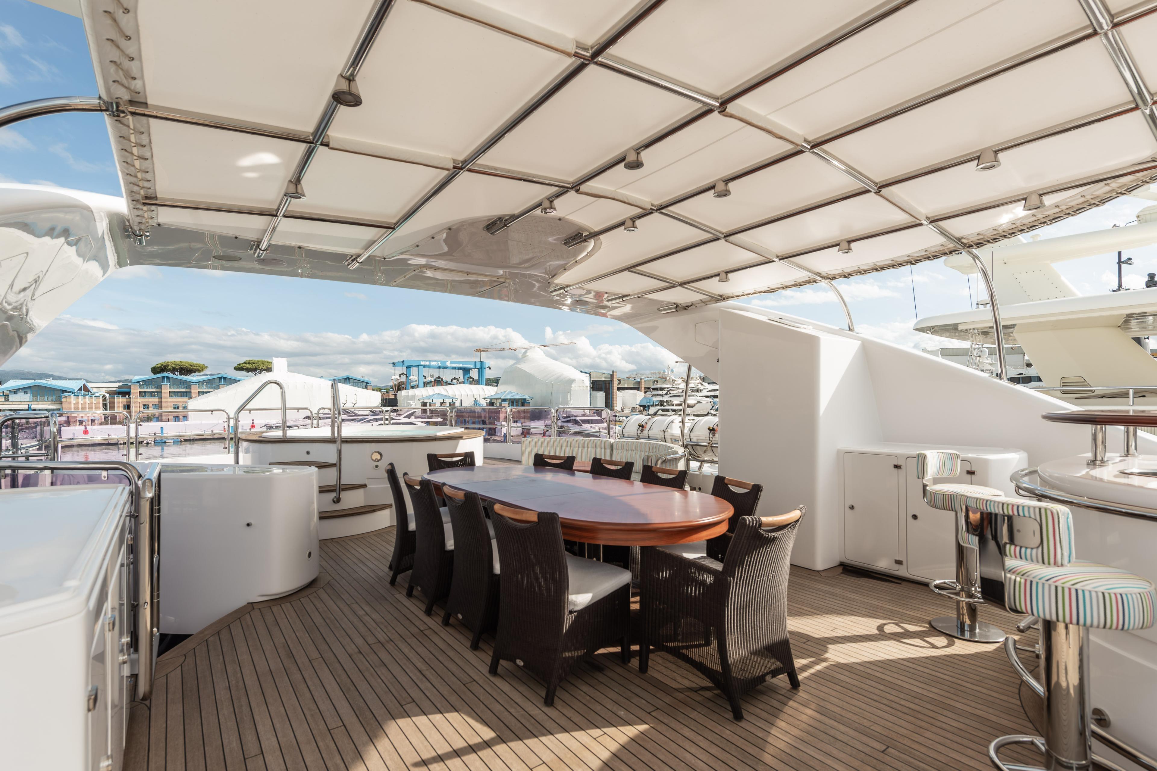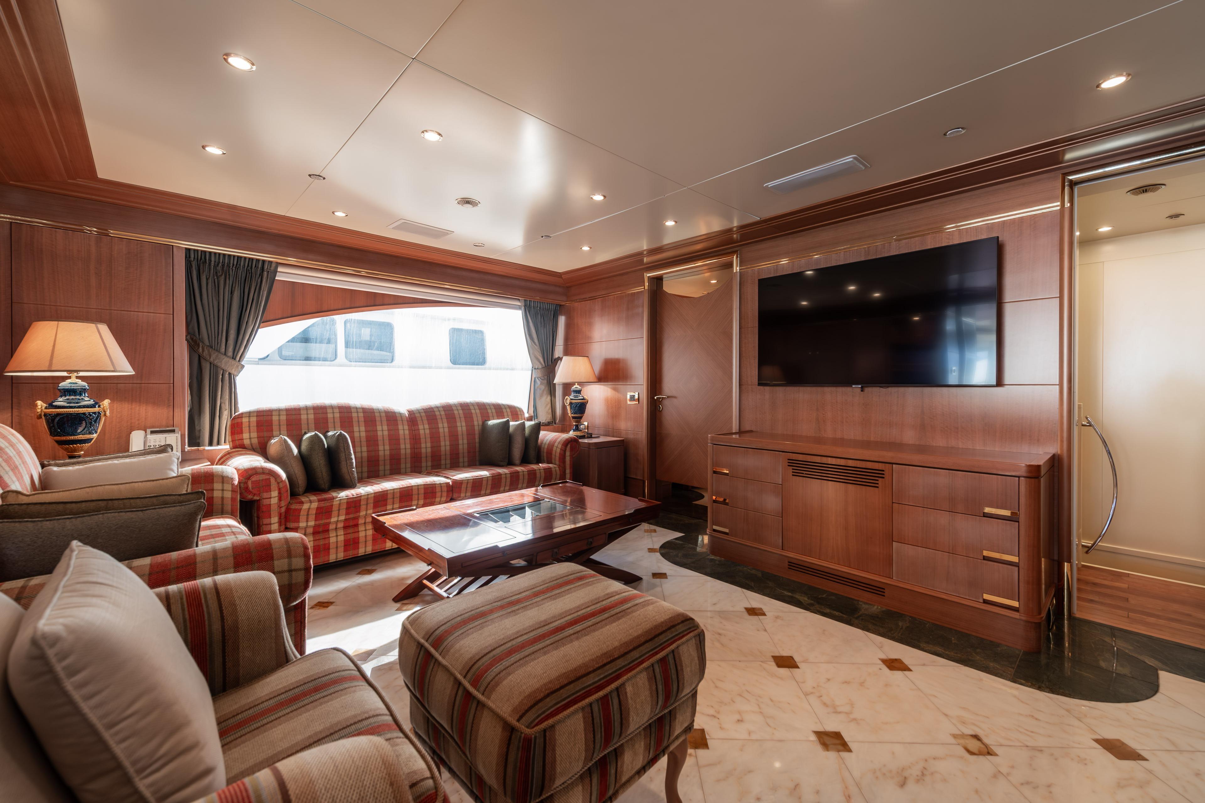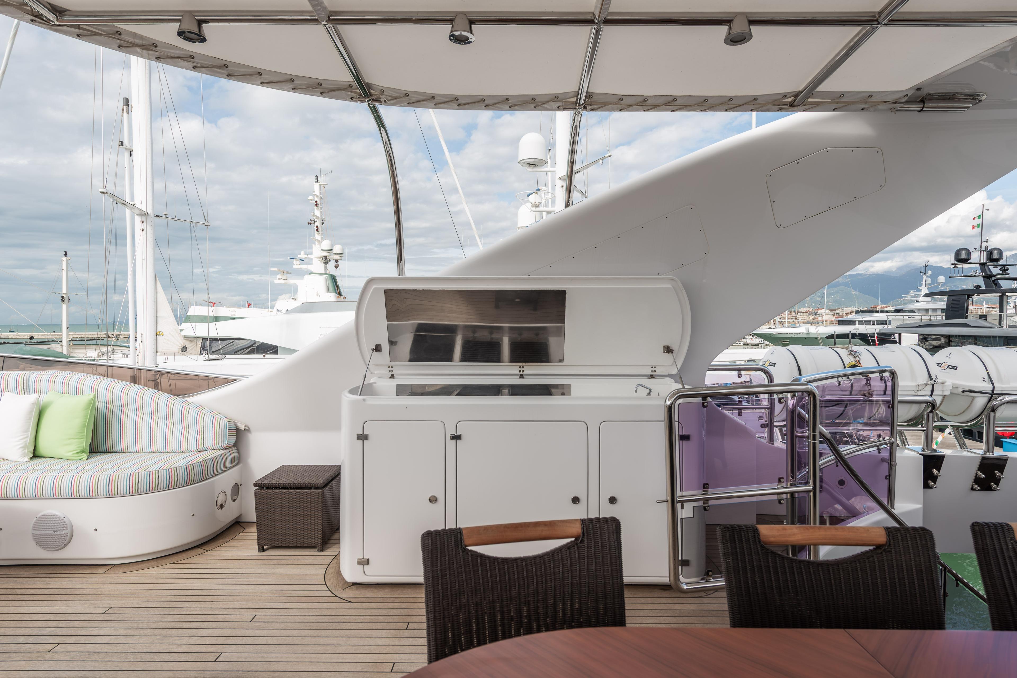The 2020 refit featured a full repaint, a new bathroom on the sundeck, new carpeting, and upgraded exterior sofas. In 2022, further improvements were added, including modernised electronics, a new monitoring system, and an Intellian 130cm TV Sat antenna.