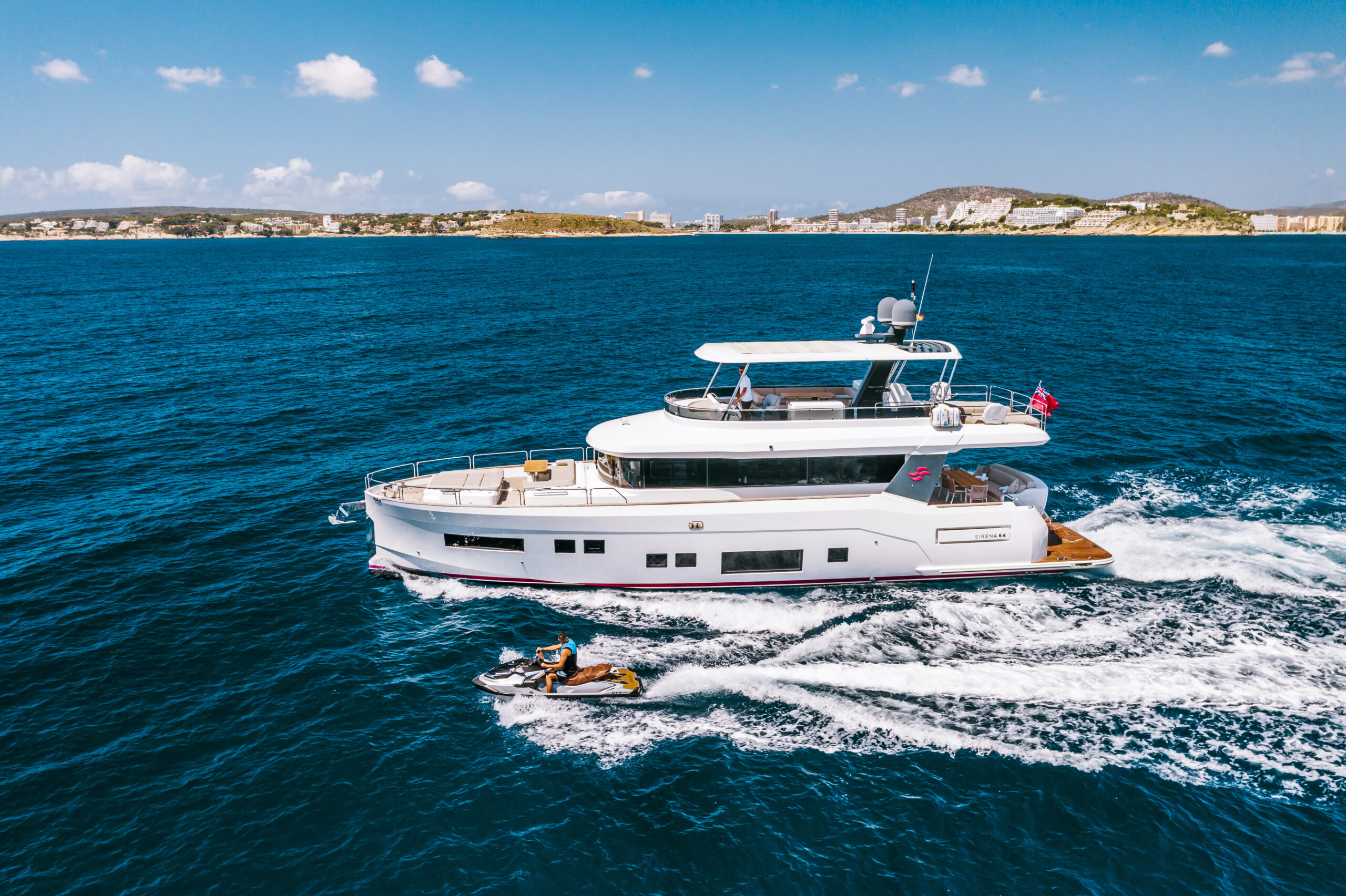 Sube a bordo de SALACIA, un elegante Sirena 64 de 21 metros diseñado para disfrutar de días relajados en el mar alrededor de Mallorca, Ibiza y Formentera.