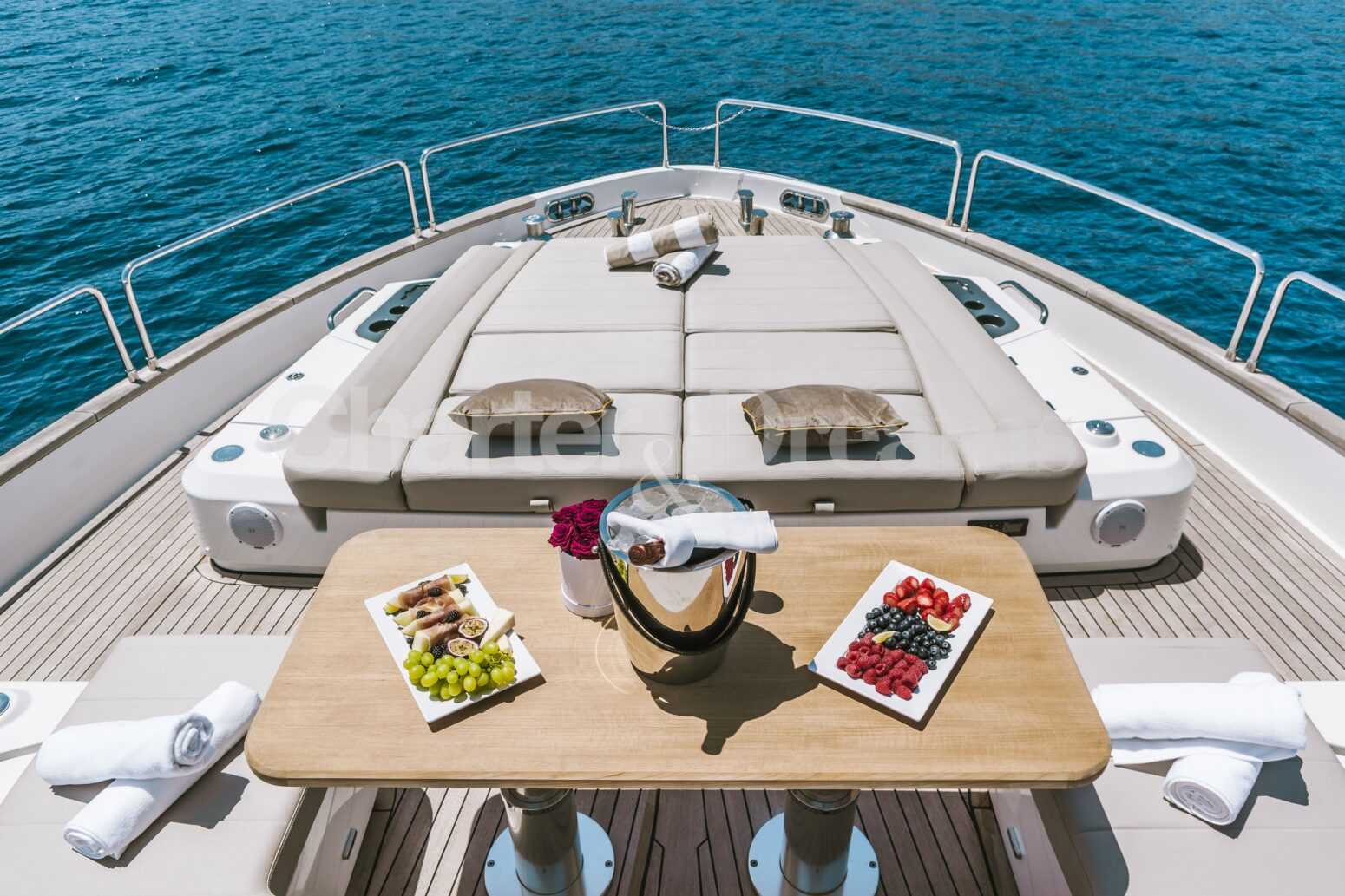 Cuenta con una completa selección de juguetes acuáticos, que incluye tender, Seabobs, paddleboards y equipo de snorkel. Con una tripulación dedicada a bordo, cada detalle está cuidado para que solo tengas que disfrutar del viaje.