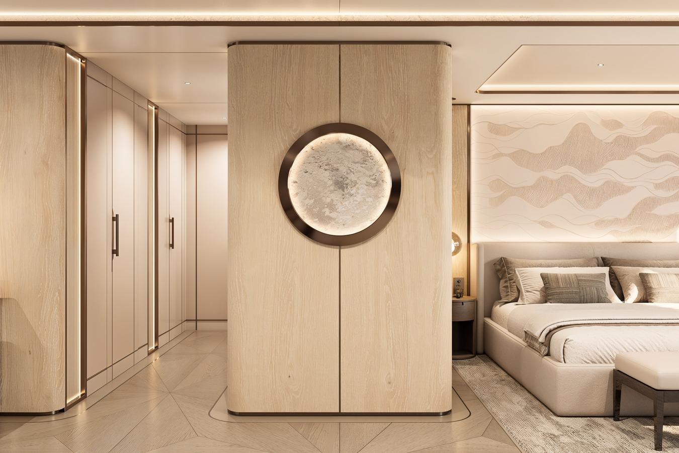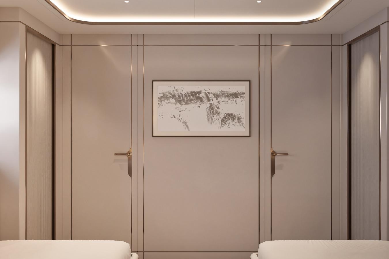 Designed by Vripack Yacht Design, her interiors reflect refined elegance, balancing luxury with functionality. She accommodates up to twelve guests across five beautifully appointed staterooms, including a full-beam master suite. With additional space for nine crew in five cabins, the yacht ensures complete separation of guest and crew areas, providing the privacy and service expected of a true superyacht.