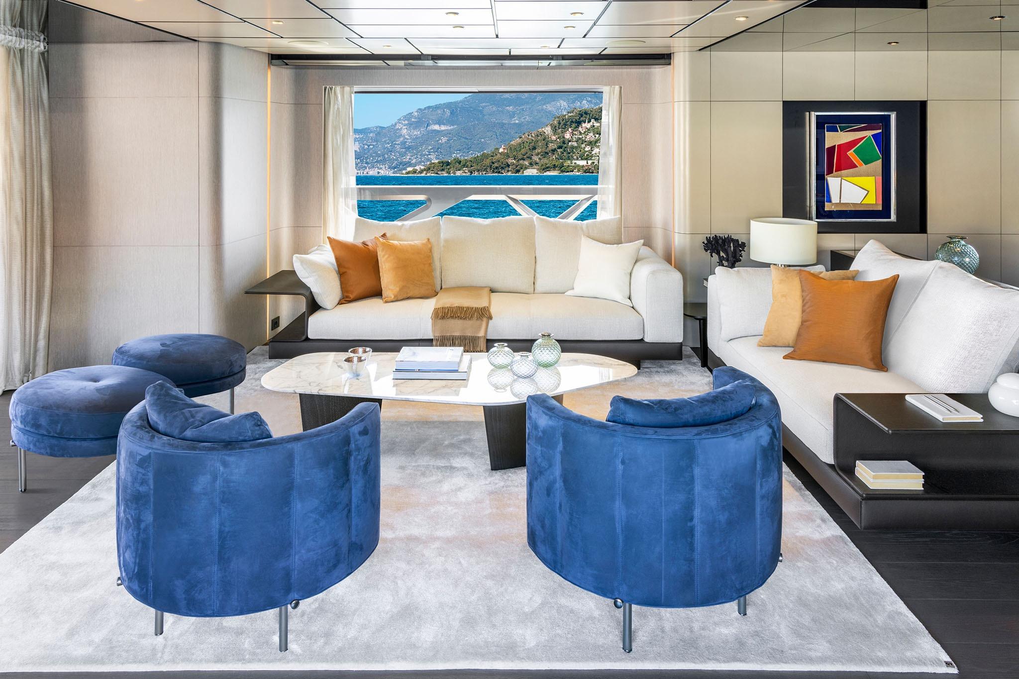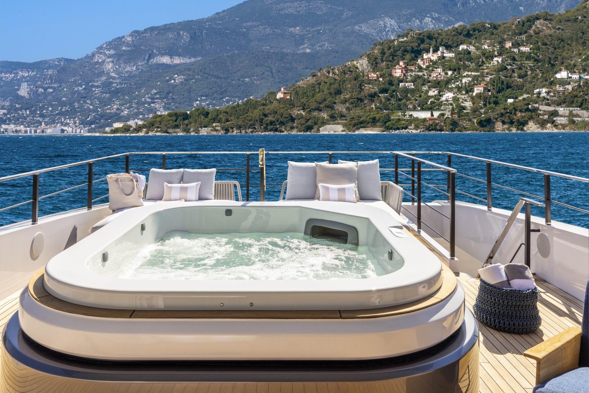La conformità MCA ne rafforza il profilo come imbarcazione ideale per charter di alto livello, assicurando standard di sicurezza e operativi di eccellenza. Gli ampi ponti esterni sono progettati per offrire spazi esclusivi dedicati al relax e all’intrattenimento: Jacuzzi panoramica, zone lounge eleganti e solarium finemente arredati si integrano con il paesaggio, creando scenari perfetti per momenti di puro benessere.