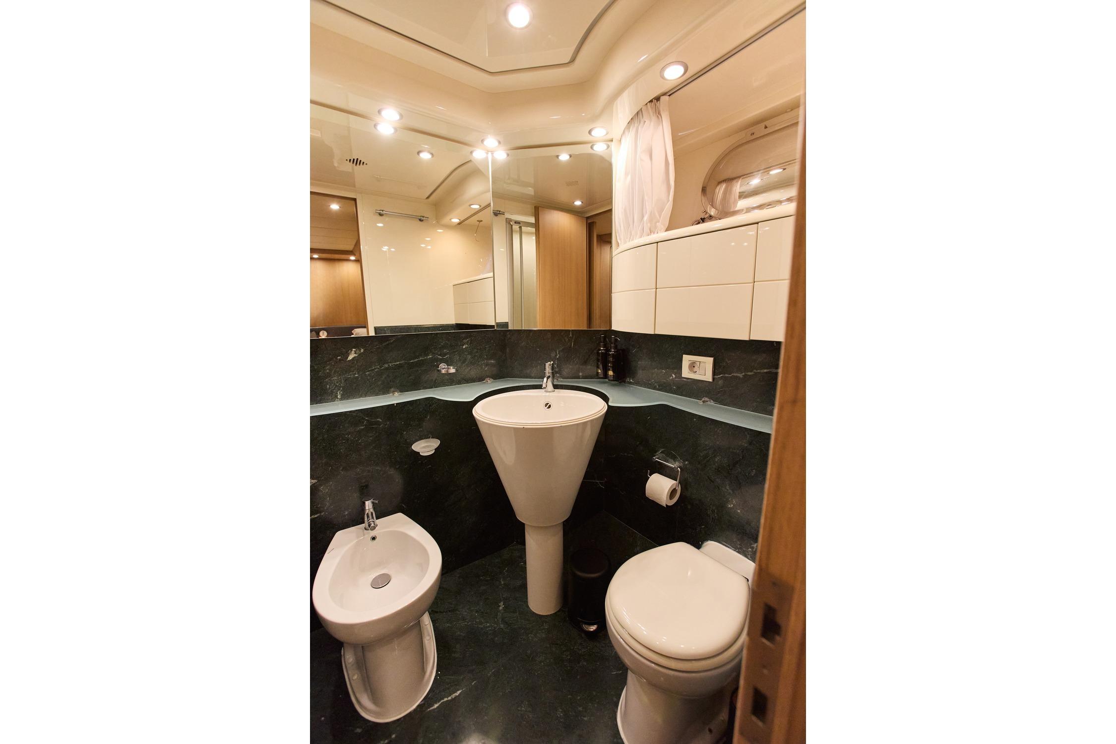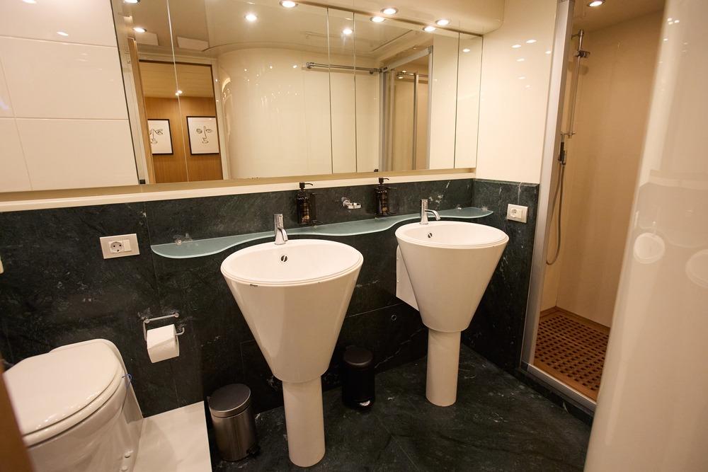 On deck, “Pobedy I” offers a spacious flybridge with helm station, sunpads and lounge, as well as a hydraulic bathing platform, hydraulic passerelle and a forward garage with 250-kg crane for tender and toys. A comprehensive selection of latest-generation water toys – including a Williams SportJet 345 (2023), Sea-Doo Spark jet ski (2022), two Seabob F5SR (2024) and a Fliteboard (2025) – underlines the yacht’s strong lifestyle appeal. Thanks to her recent refit, the vessel is presented in excellent cosmetic and technical condition, ready for the next season.