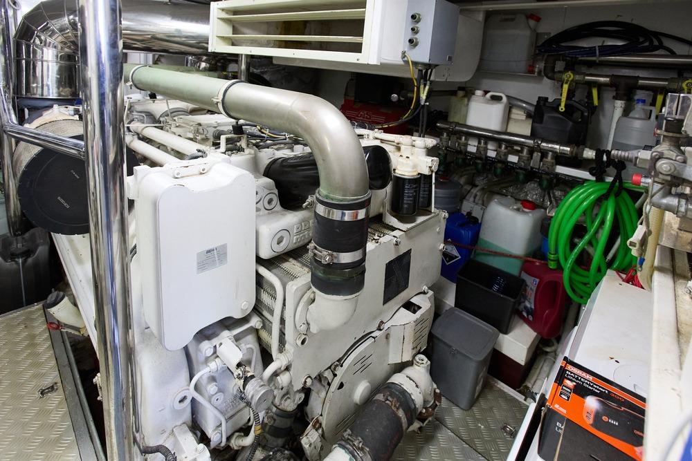 Powered by twin MTU 12V2000 diesel engines and fitted with CMC gyroscopic stabilisers, the yacht delivers a fast and comfortable cruising speed around 23 knots, with a top speed of 26–27 knots, in line with comparable Maiora 26 models. The layout accommodates 8–9 guests in 4 en-suite cabins (full-beam Master, VIP and two Twin cabins) plus separate crew quarters for 4, ensuring a discreet, professional service on board. The main saloon features a marble dining table for eight, a comfortable lounge area with Samsung Smart TV and Starlink internet, while the fully renewed galley (2024) is equipped with modern Samsung appliances designed for extended cruising.
