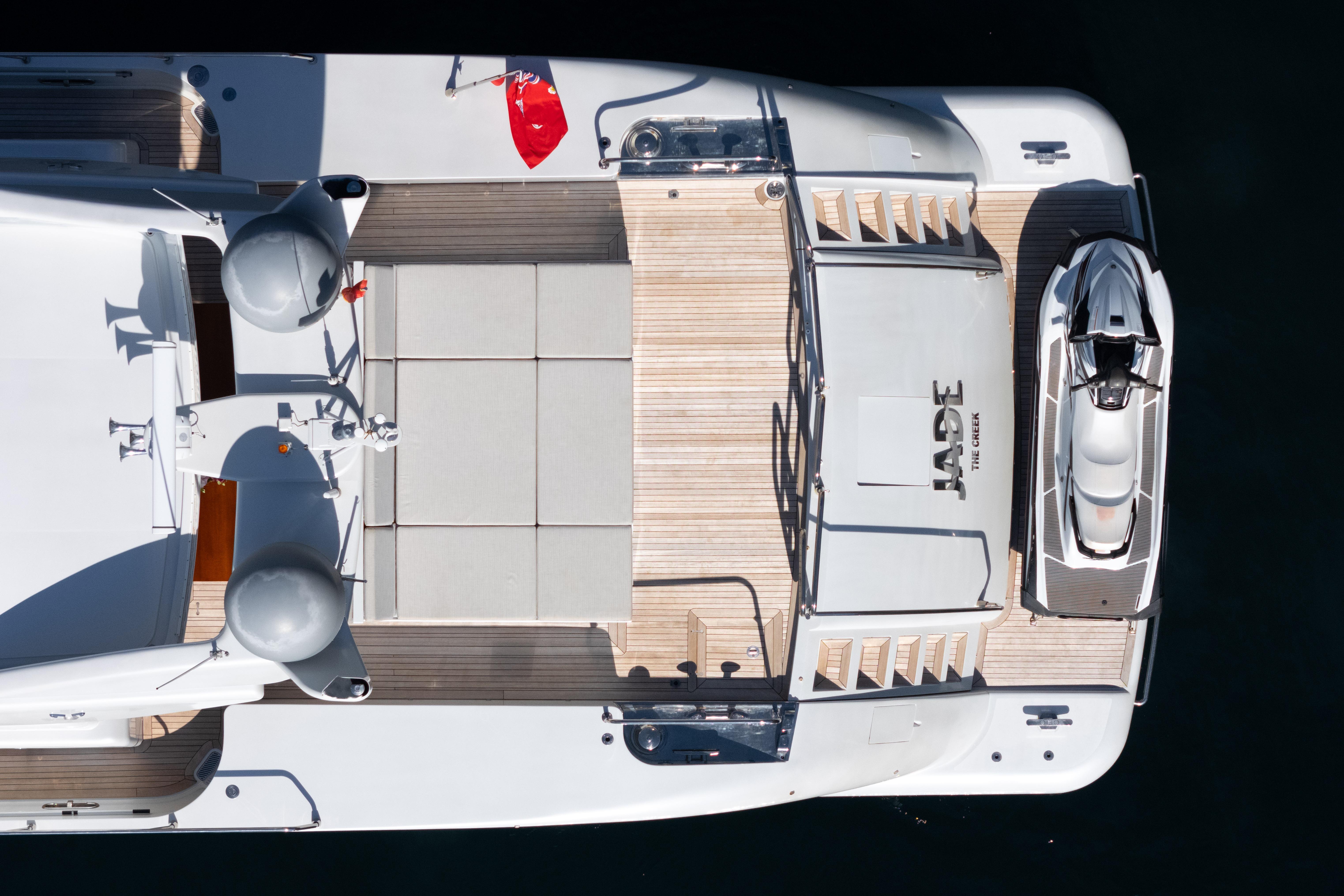 Thanks to annual professional maintenance, JADE has been kept in pristine condition year after year. In recent seasons, she underwent major aesthetic upgrades, including the complete replacement of the teak decks throughout the yacht, enhancing her elegance and comfort underfoot. Adding to her uniqueness, JADE features a custom exterior paint finish, giving her a refined and instantly recognizable presence in any marina.