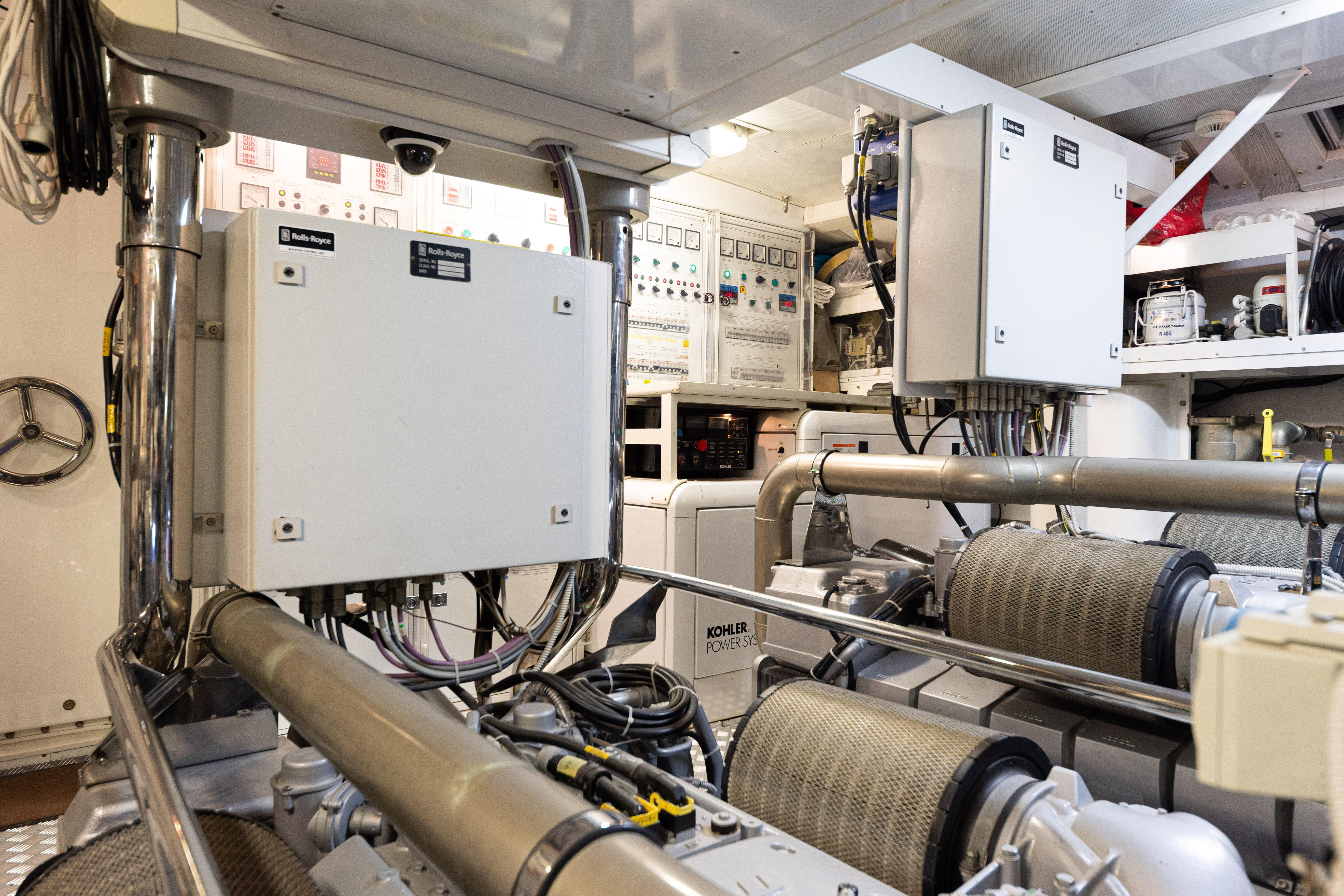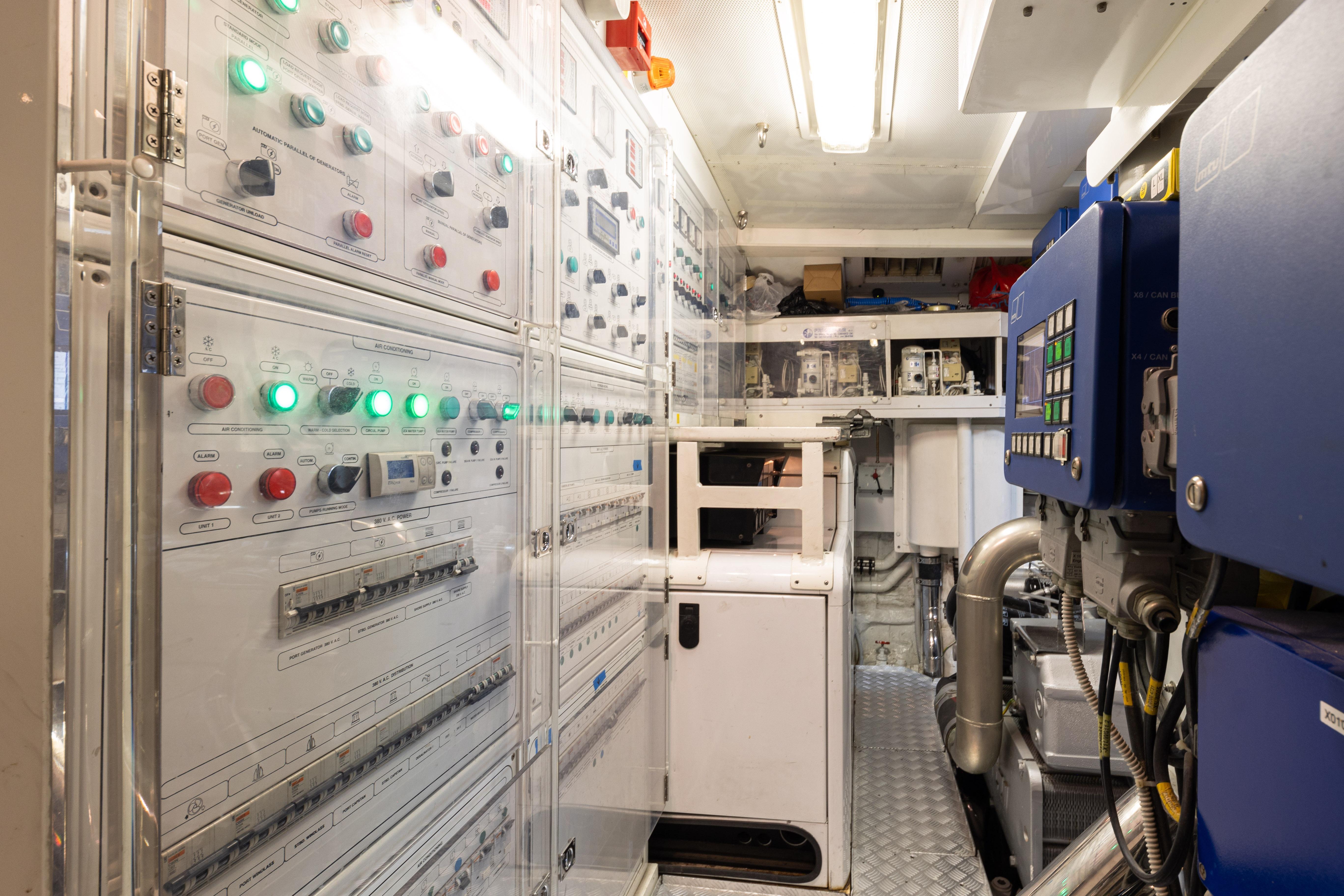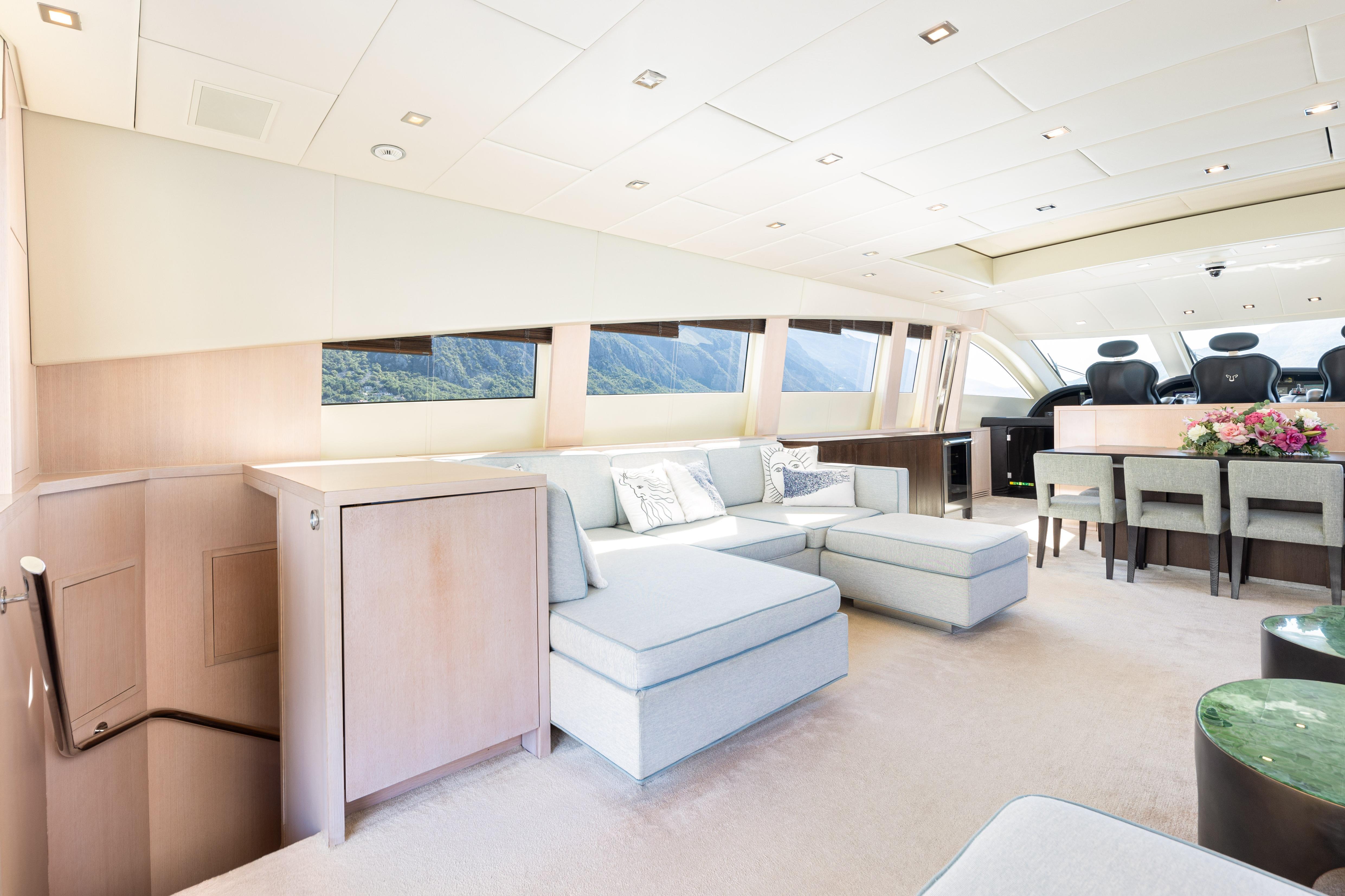 Underneath her sophisticated lines, JADE hides an impressive powerhouse. Powered by three MTU 12V 2000 M93 engines, she delivers thrilling top speeds of up to 43 knots and cruises comfortably around 34–36 knots. In addition, JADE has been equipped with a Seakeeper M26 gyroscopic stabilizer, ensuring exceptional stability both underway and at anchor — a rare feature on open yachts of this size, significantly enhancing onboard comfort.
