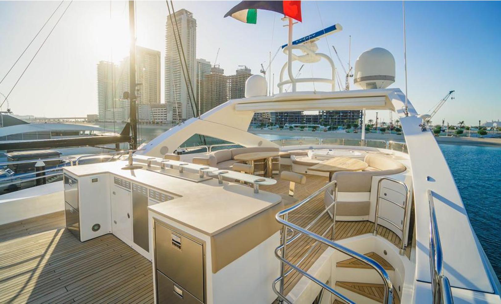 Sunseeker 40M boasts a unique sky deck arrangement with lounging spaces and a stunning barbecue area for al fresco dining. In addition, private retreats can be found throughout the yacht for those in search of tranquility. Her layout makes her ideal for an owner interested in a yacht with serious charter potential Other key features of this luxury superyacht are the drop-down balconies and the hydraulic platform.