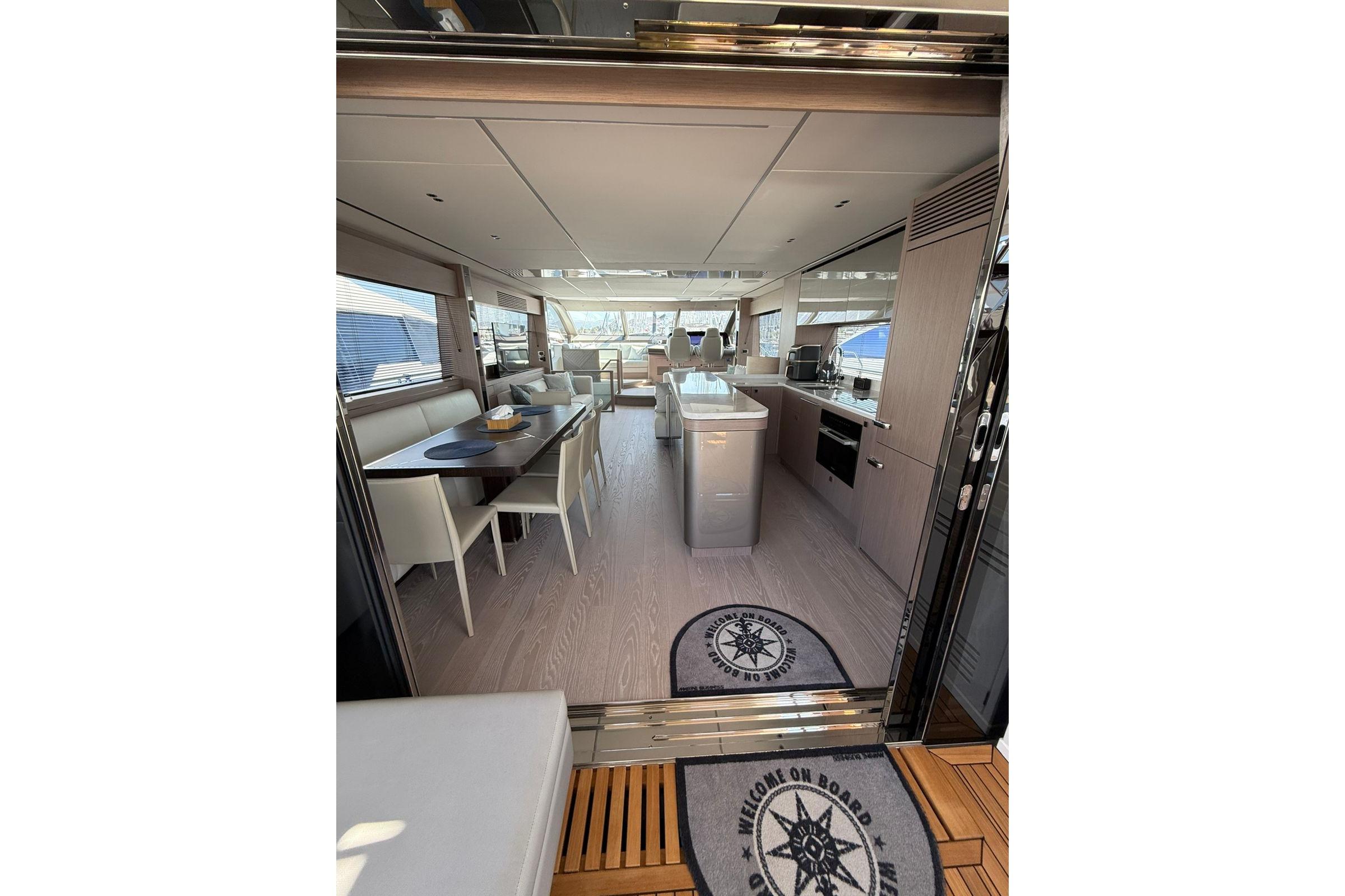 The 2025 Sunseeker 76 Yacht represents the perfect blend of performance, luxury, and contemporary design. Presented in like-new condition, this stunning vessel has had just one meticulous owner since new and has been used only a few months. Powered by twin MAN V12 1550 engines (2 x 1550 PS) with very low hours, she delivers an exceptional cruising experience with smooth handling and impressive power. Every detail of this yacht reflects Sunseeker’s craftsmanship, from her elegant interior finishes to her spacious outdoor living areas designed for entertaining and relaxation.