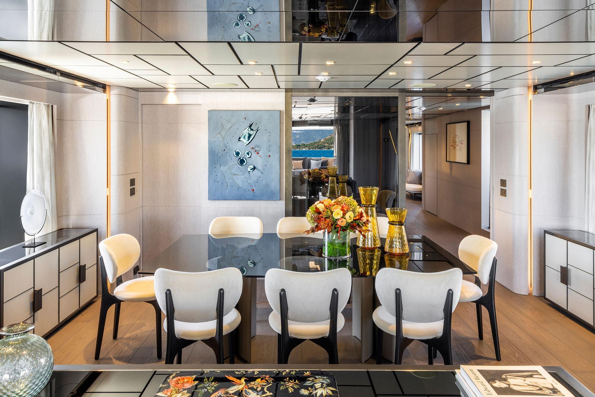 Designed by the celebrated architect Francesco Paszkowski with interiors by Margherita Casprini, Miotu embodies the ideal fusion of sporty, dynamic lines and refined contemporary Italian style. Her expansive four-deck layout delivers remarkably large interior and exterior volumes, ensuring exceptional liveability, privacy, and freedom of movement for all guests on board. Natural light floods every area, enhancing the sense of space and the connection with the sea.