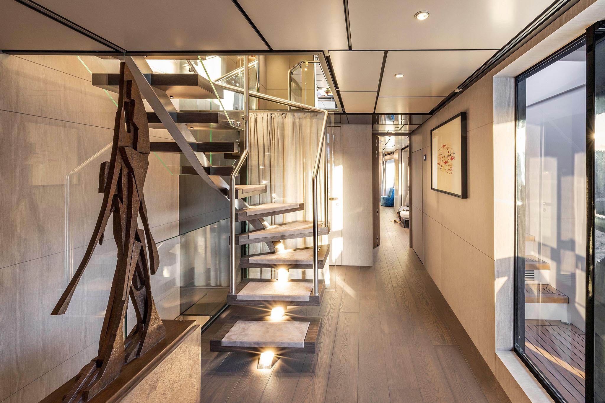 Built through advanced composite and carbon fiber construction, Miotu ensures outstanding performance, efficiency, and reduced noise and vibration underway. Comfort is elevated to the highest standards thanks to her dual stabilization systems, providing superior stability both at anchor and while cruising, guaranteeing a smooth and enjoyable experience in all sea conditions.