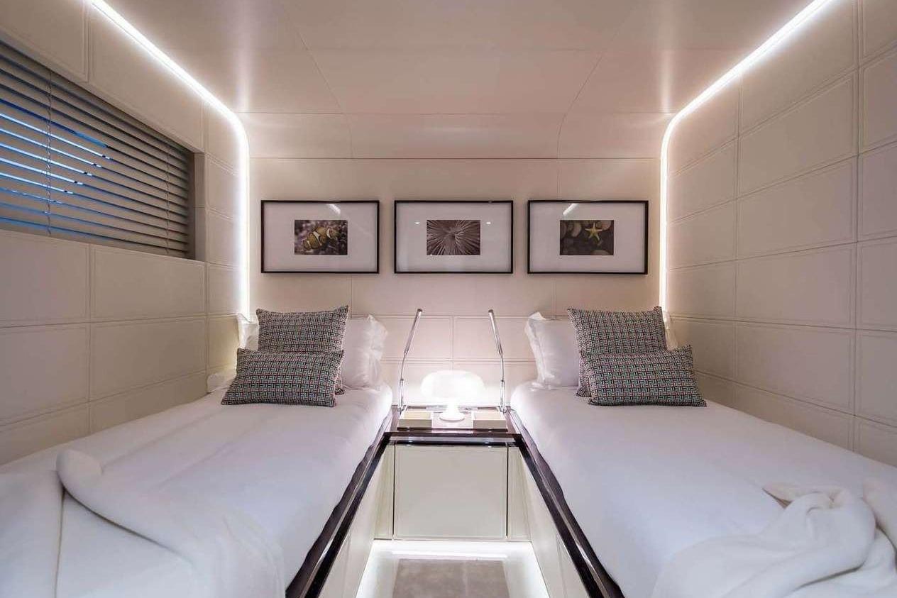 On the lower deck you will find 4 guest staterooms. 2 VIP doubles, 1 double and 1 fixed twin, all en-suite.