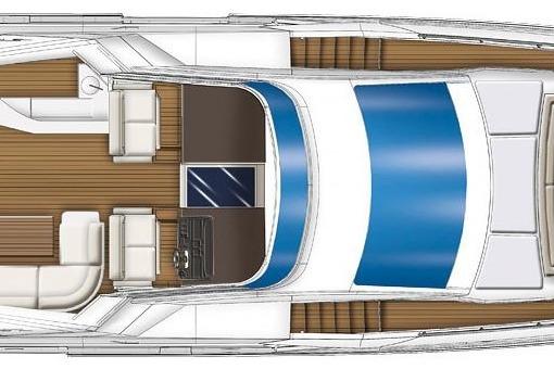 Elegant lines by Stefano Righini and carbon superstructure ensure strength and poise. Expansive flybridge with bar, coffee machine, and electric shade; foredeck with teak table and modular sun pads; beach club with hydraulic lift for Seadoo and fresh-water wash points throughout.