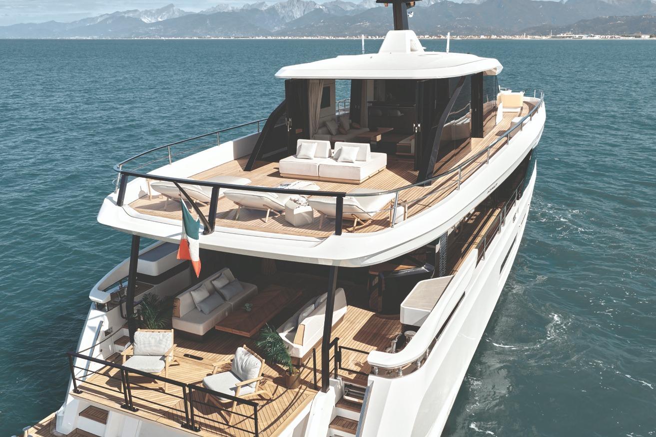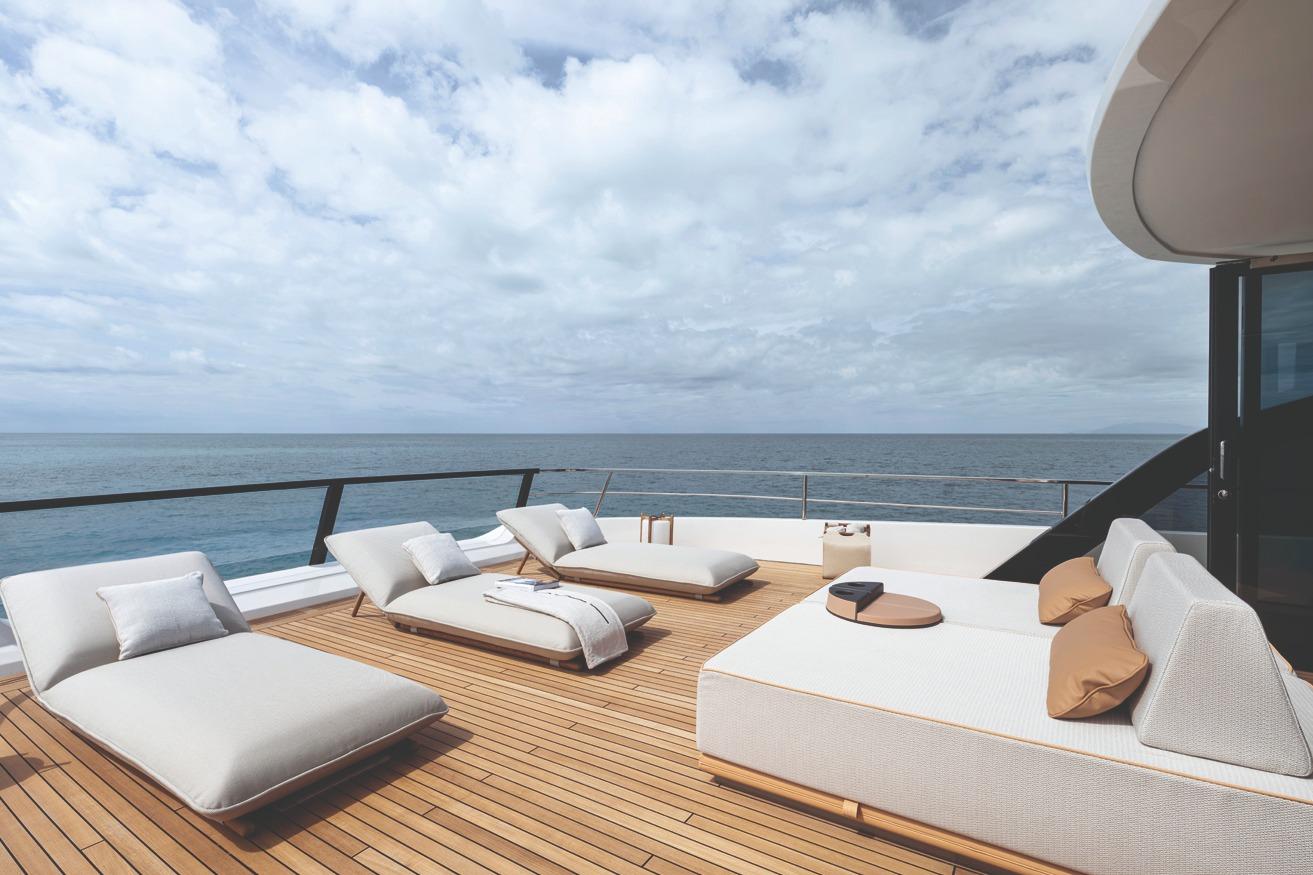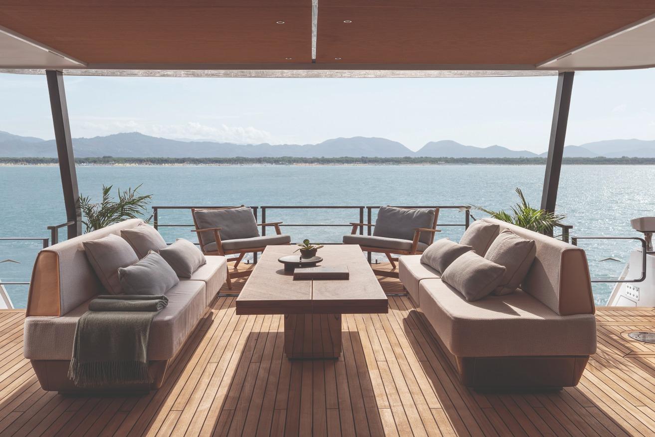 - Carbon fiber poles with tent to cover the upper deck aft area
