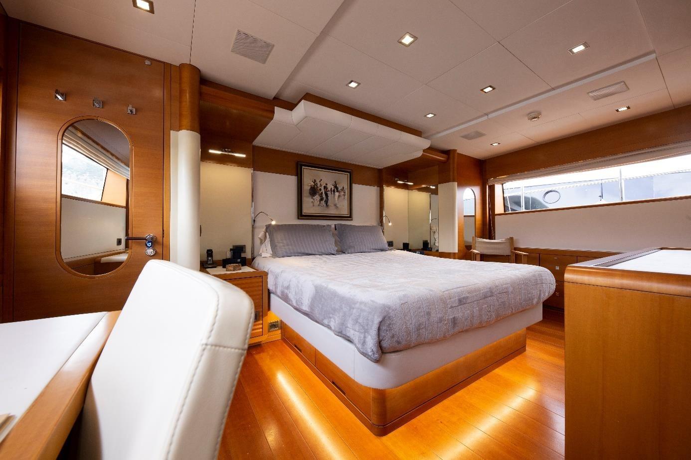 The four-cabin layout sleeps up to ten in refined surroundings, complemented by separate crew quarters for four to ensure discreet service. CAT C15s (885 hp each) deliver reliable propulsion with a 15-knot reported top, while twin 40 kW John Deere gensets support hotel loads at anchor. Presented in operationally excellent condition, she balances Benetti craftsmanship with practical Mediterranean cruising capability.