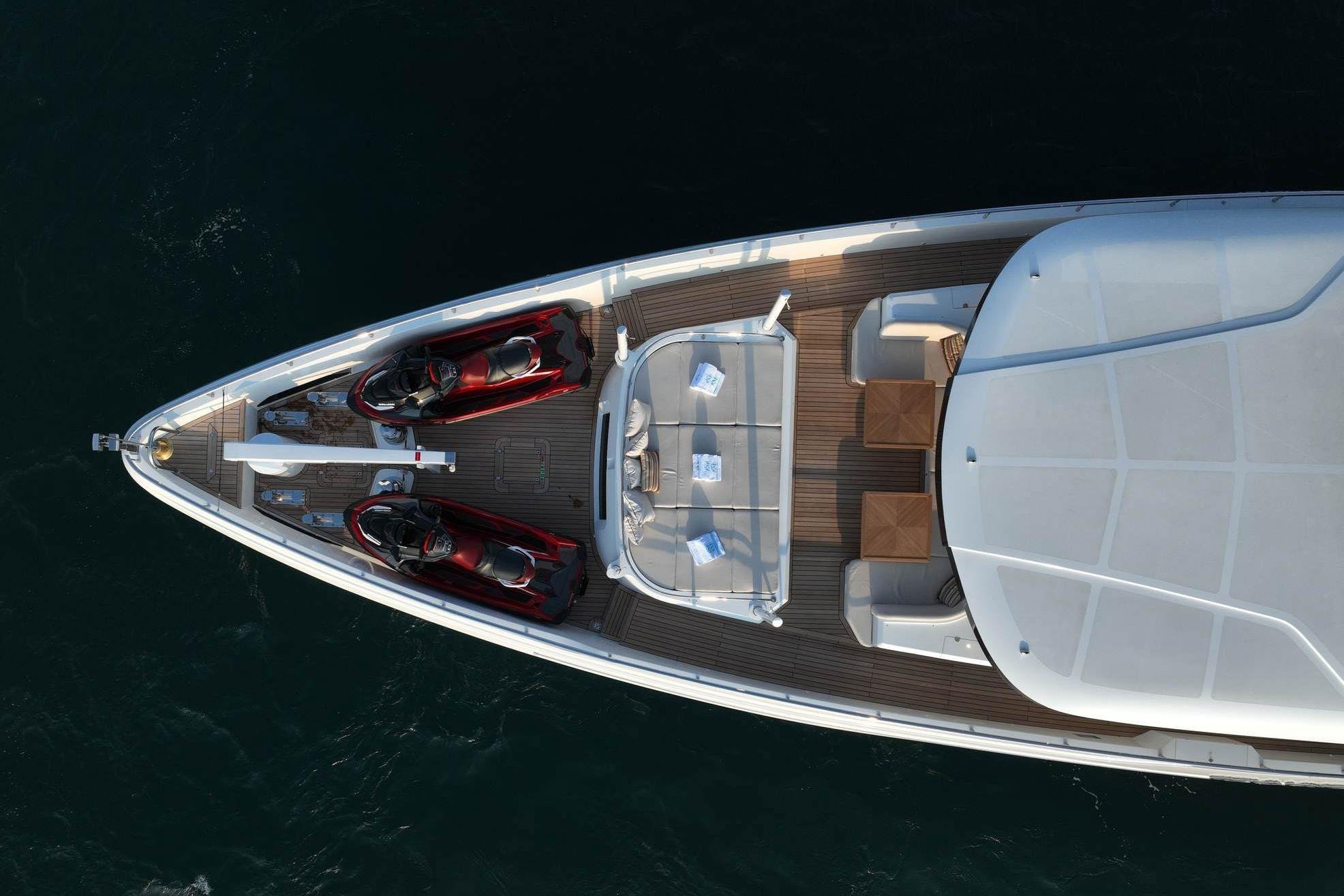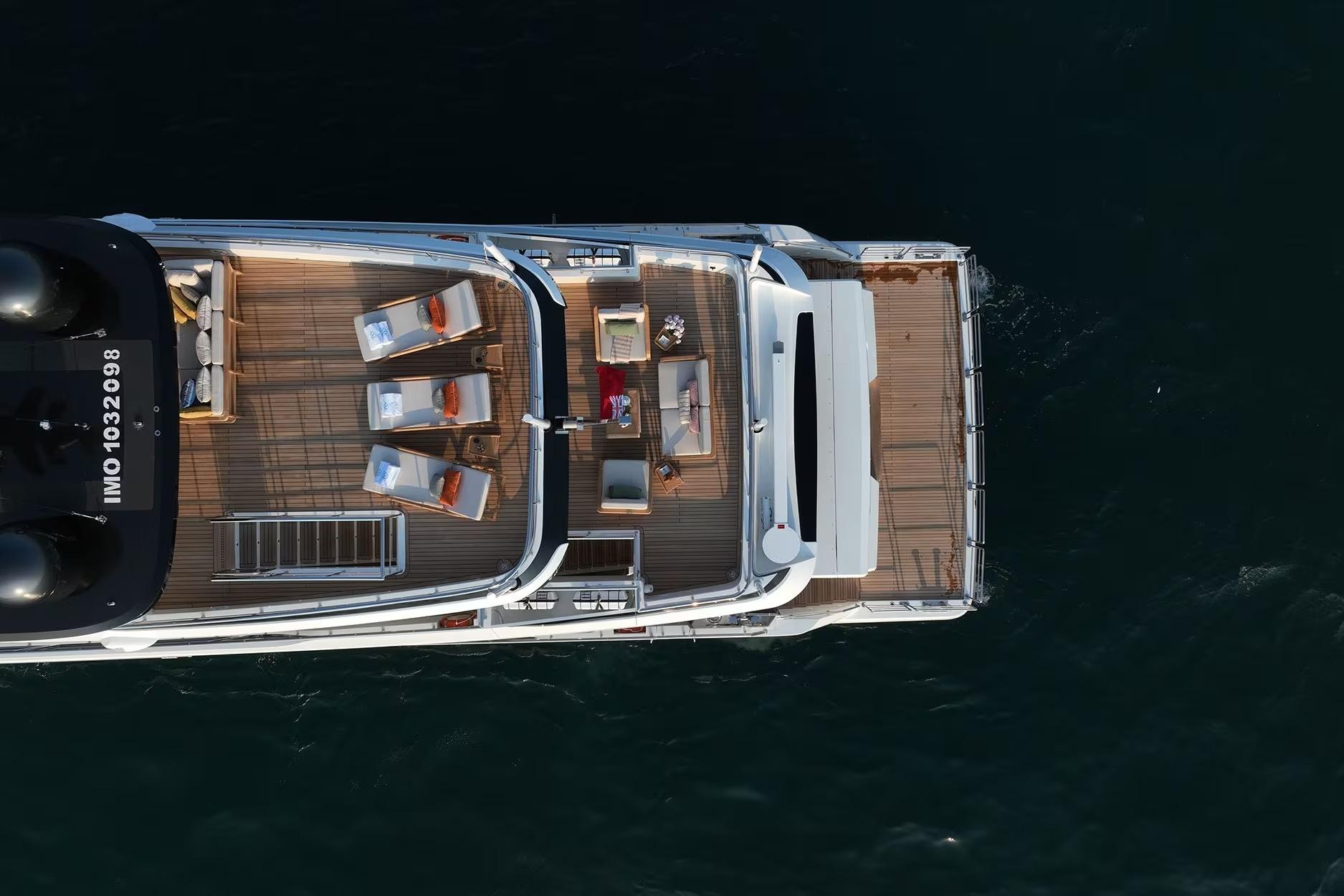 The smart layout onboard the Majesty 120 allows for a beachclub to double as a tender garage, creating a hybrid solution for the guests onboard. The multipurpose ladder that extends from the swim-platform allows for an easier and safer access to the superyacht while moored.